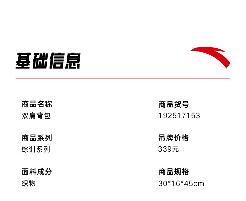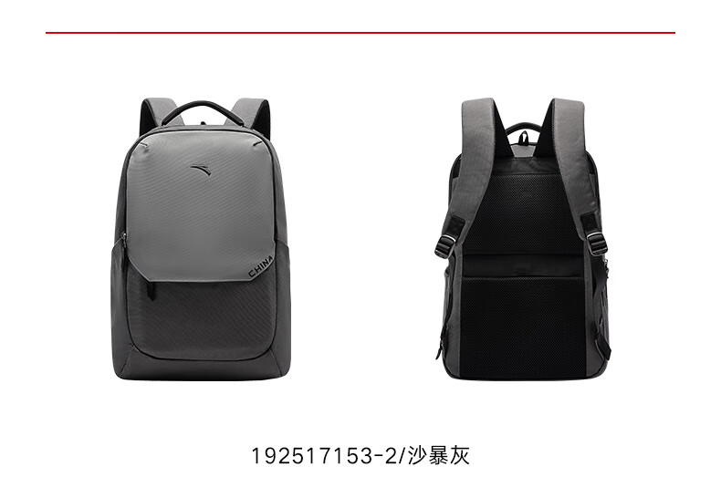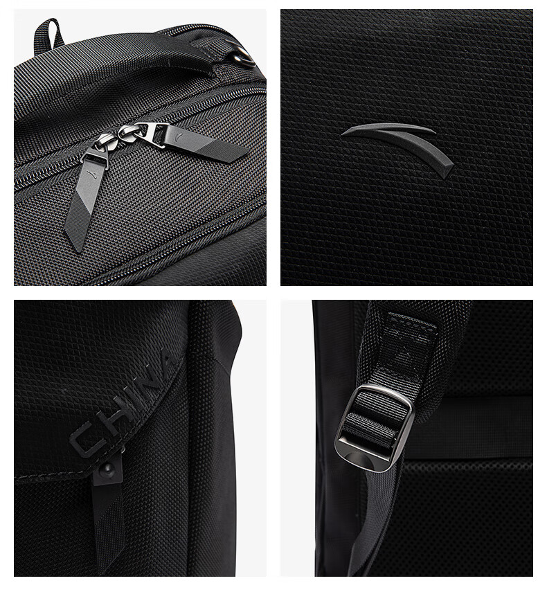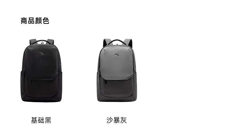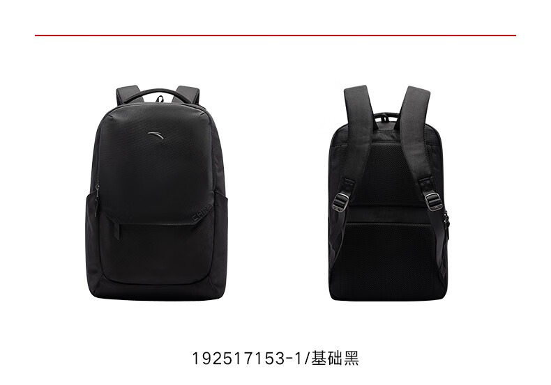 安踏双肩包 大容量通勤包运动背包减负电脑包简约黑色背包192517153