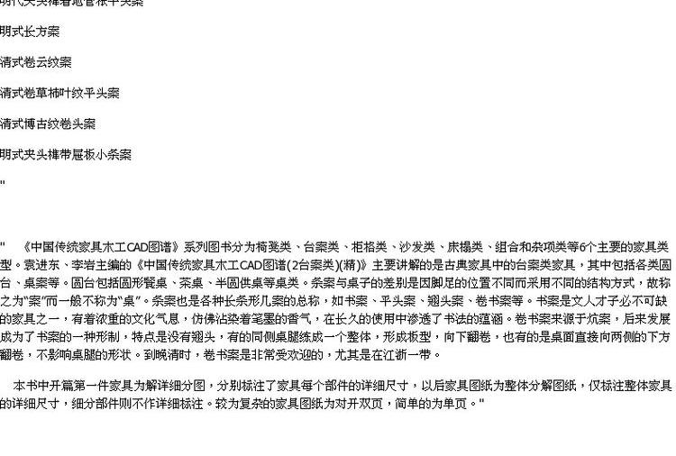 中国传统家具木工CAD图谱 2台案类 9103 圆形餐桌 茶桌 半圆供桌 书案 平头案 翘头案 卷书案 家具设计书 中国林业出版社 畅销书