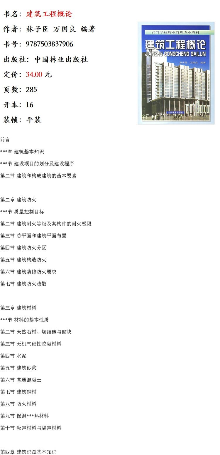 建筑工程概论 (附光盘) 3790 高等学校物业管理专业教材 林子臣 万国良 主编 中国林业出版社畅销书