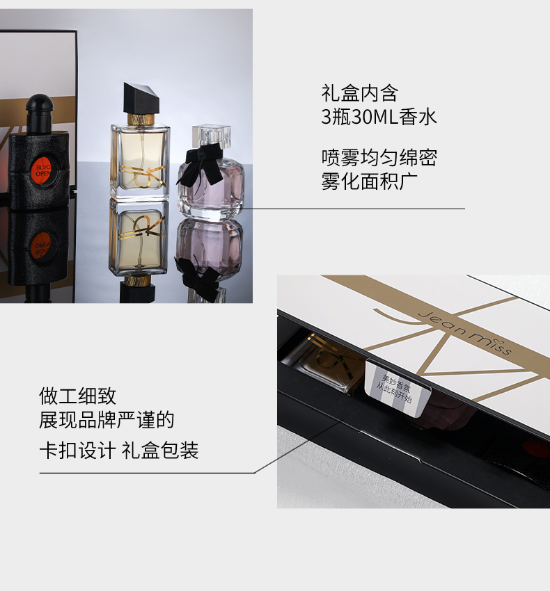 JEAN MISS自由派对礼盒装女士香水三件套 清雅芬香 黑咖啡/反转派对/自由女士 三种香型随意切换 精致高级礼盒装