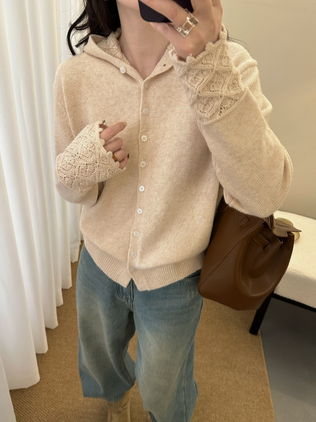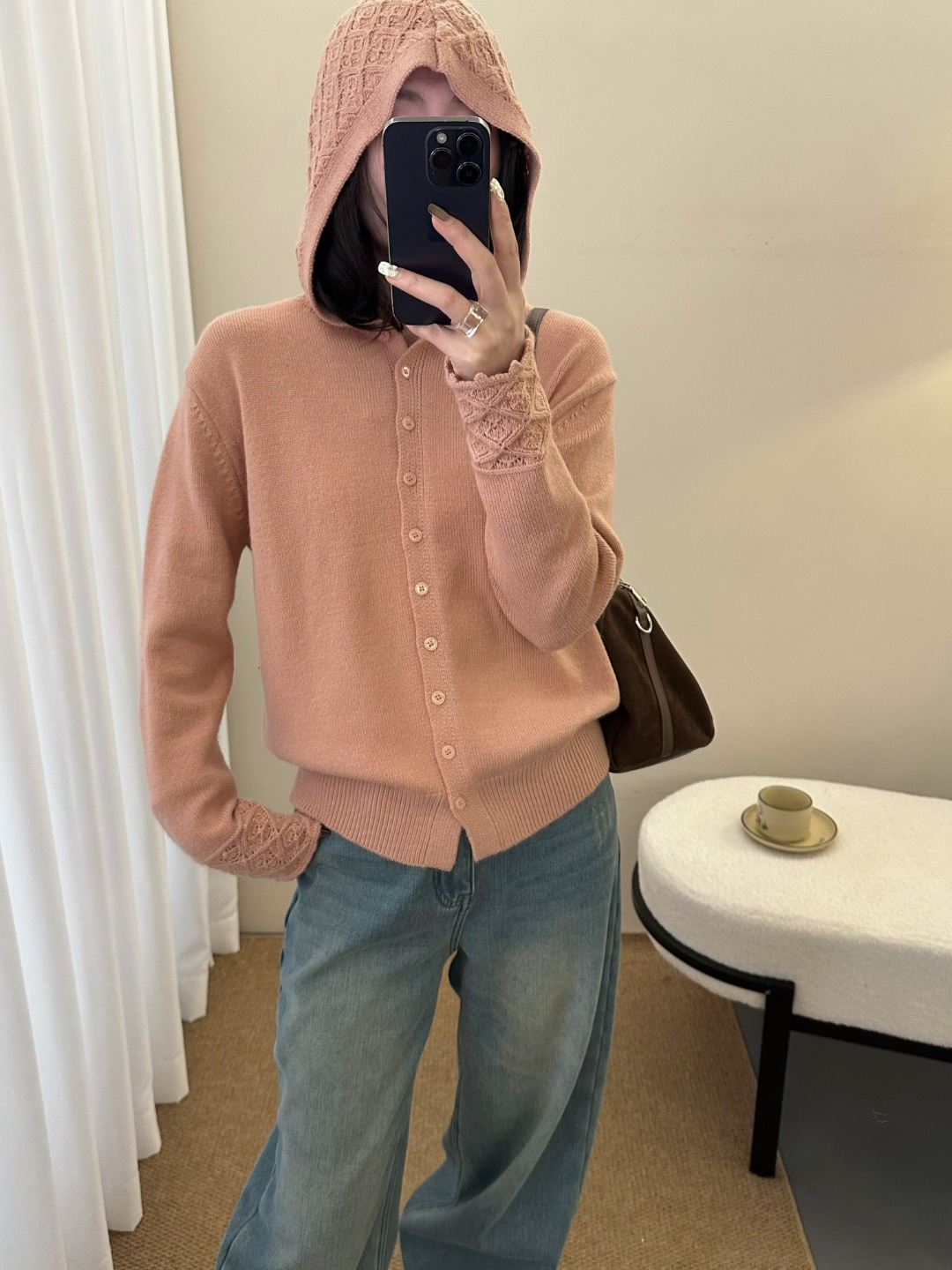 小马刺绣~丝羊毛圆领立体刺绣提花高级感撞色开衫女毛衣针织衫