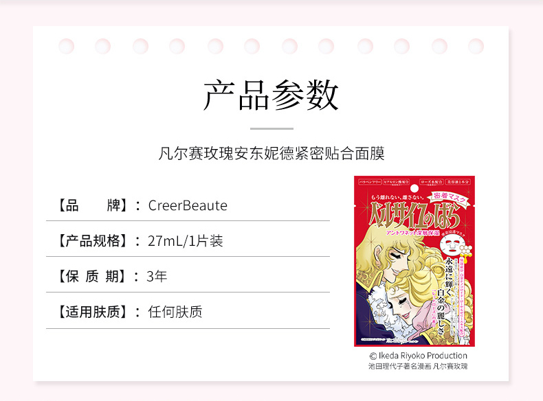 池田理代子著名漫画凡尔赛玫瑰安东妮德公主紧密贴合面膜27ml