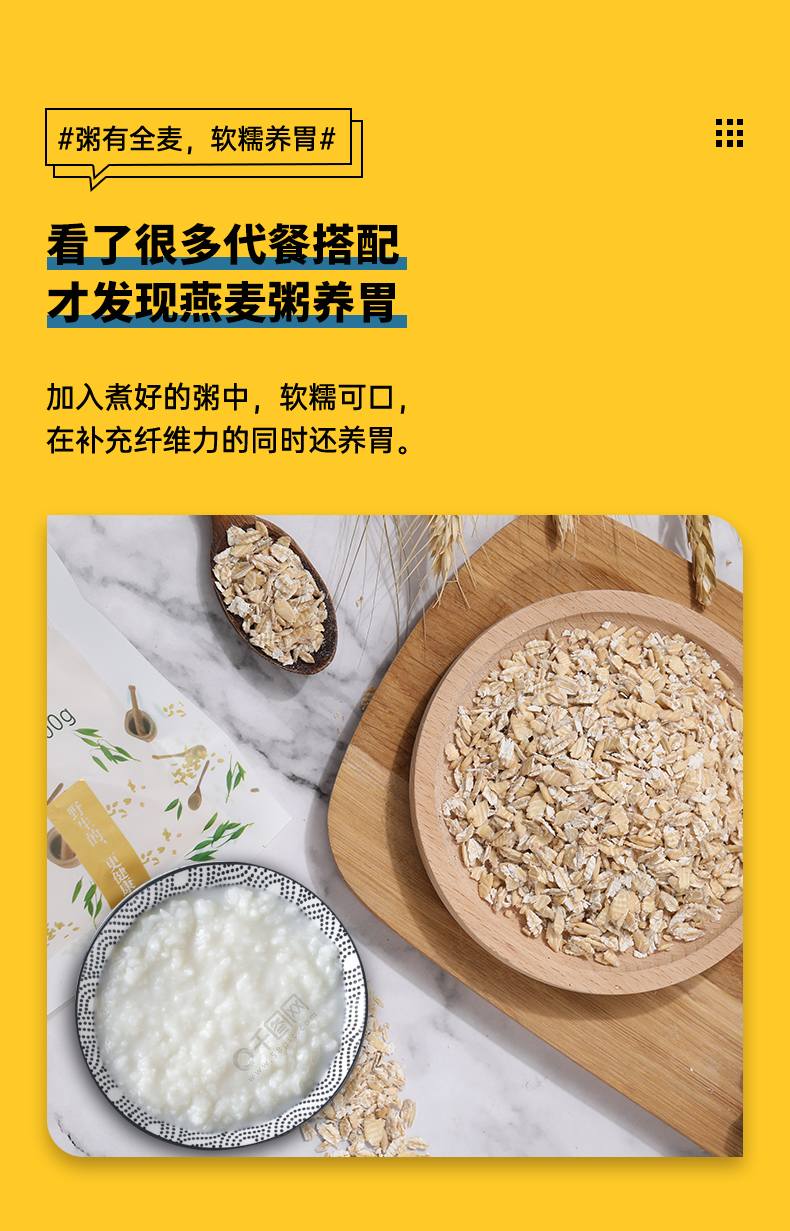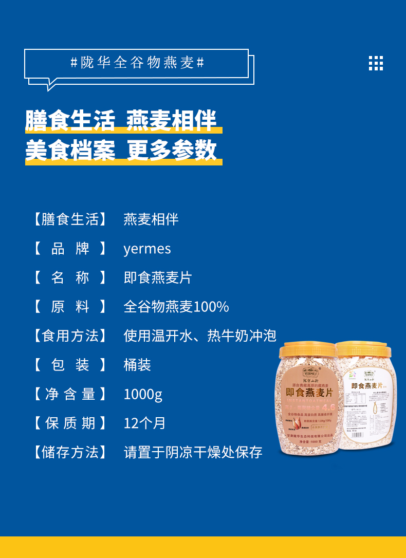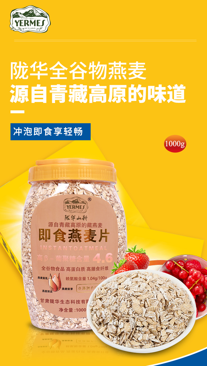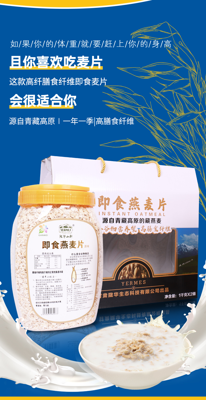 陇华山耕 全麸皮即食燕麦片 1000克*2