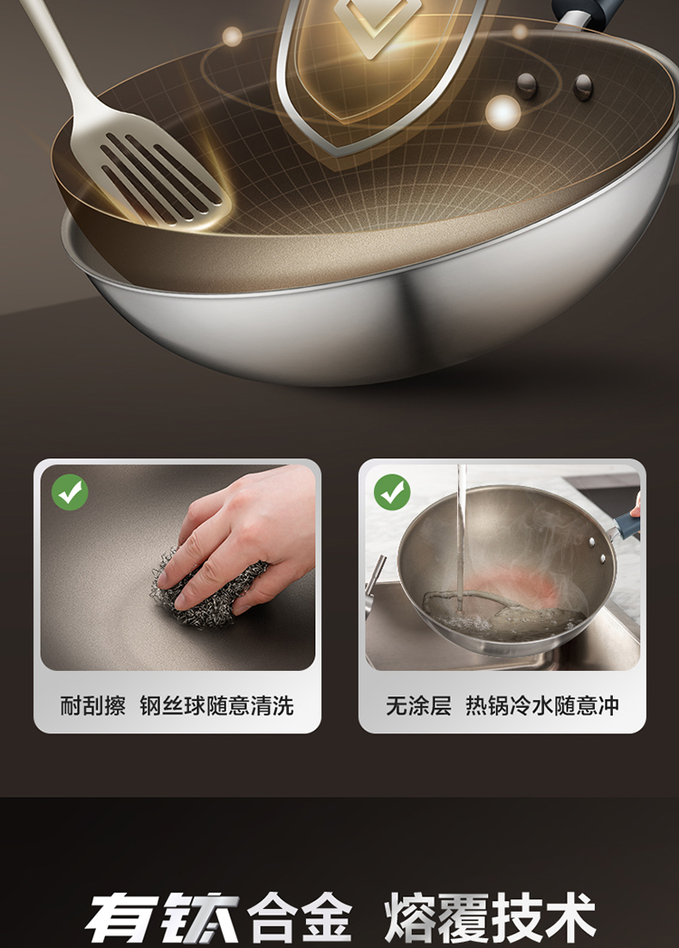 苏泊尔有钛无涂层不粘抗菌炒锅CC32JG3家用炒菜锅燃气灶用