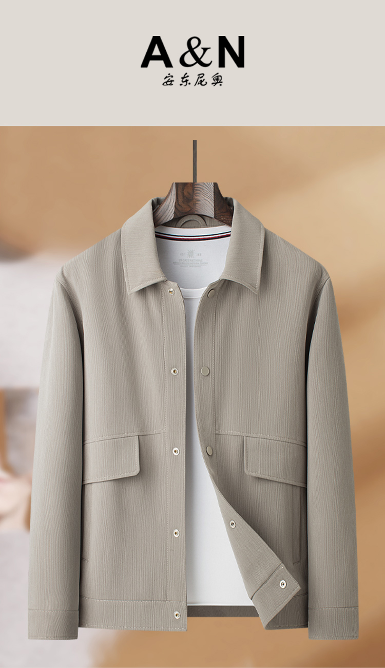 安东尼奥A&N 【通勤百搭款】休闲薄款夹克男2026新款春季翻领宽松挺括外套4994776