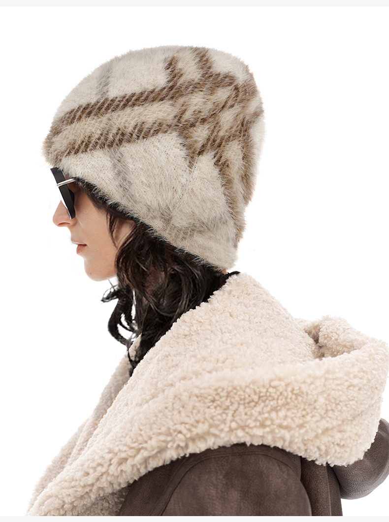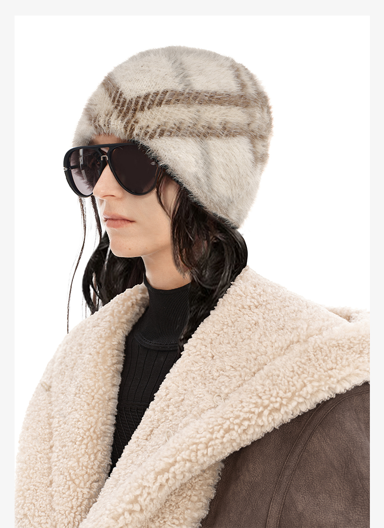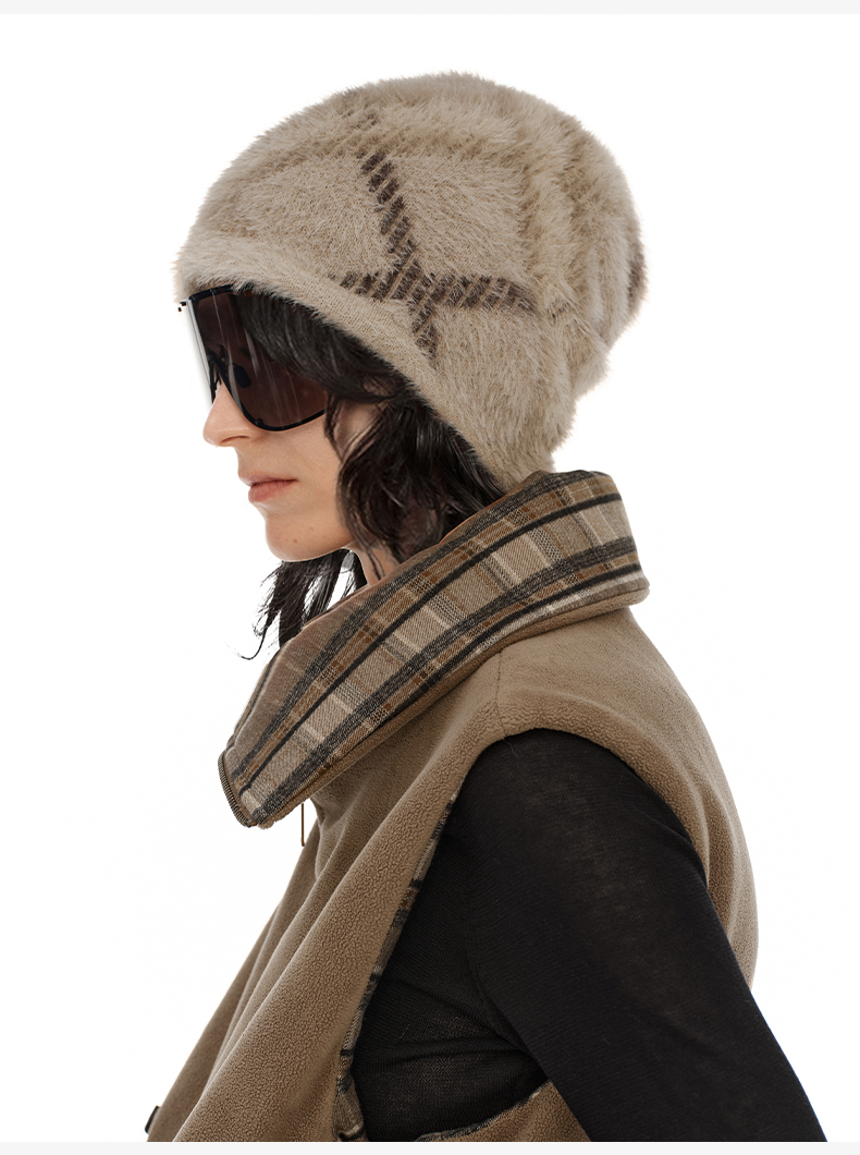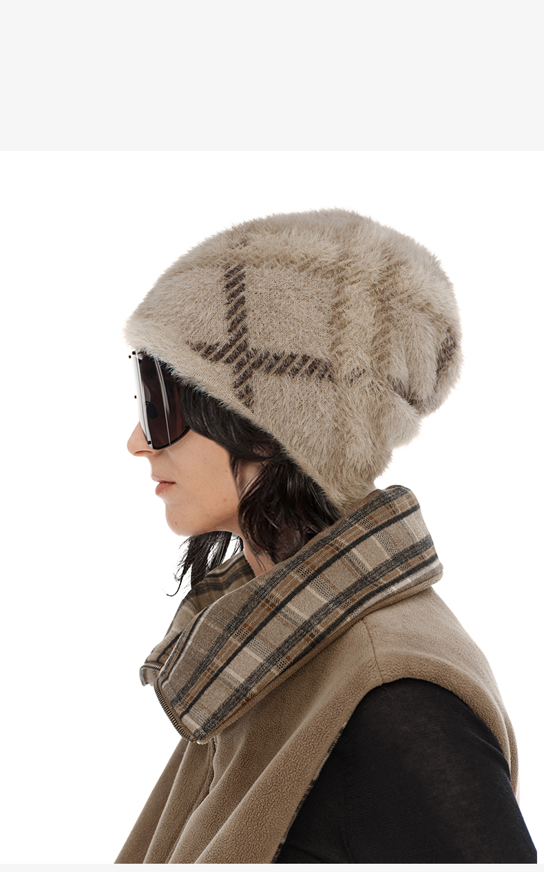 NUTH 正反两面戴保暖格纹毛绒针织冷帽女