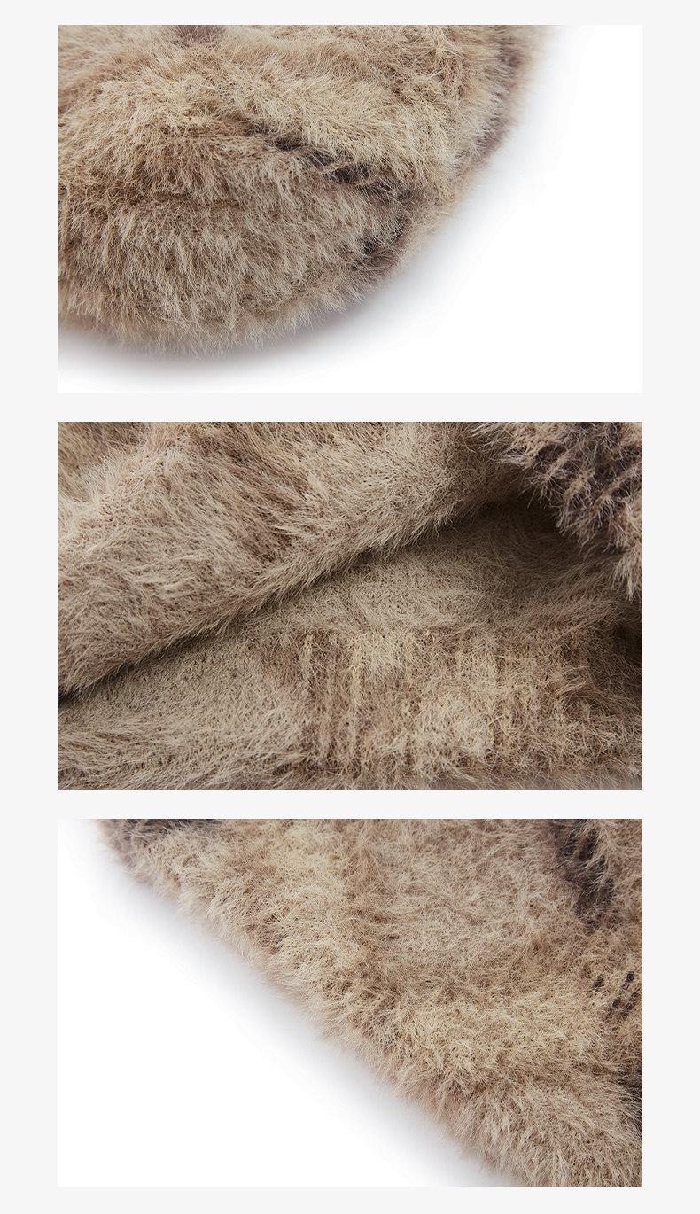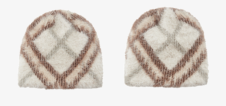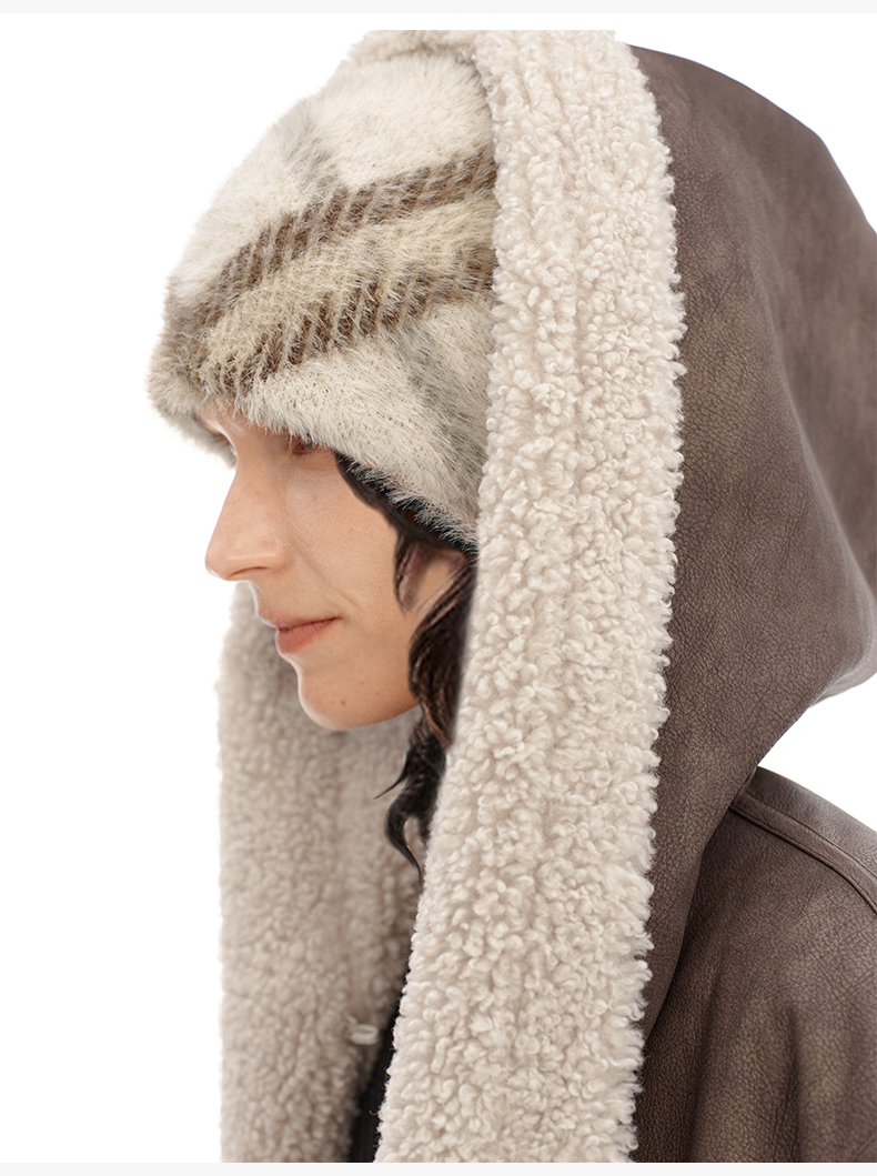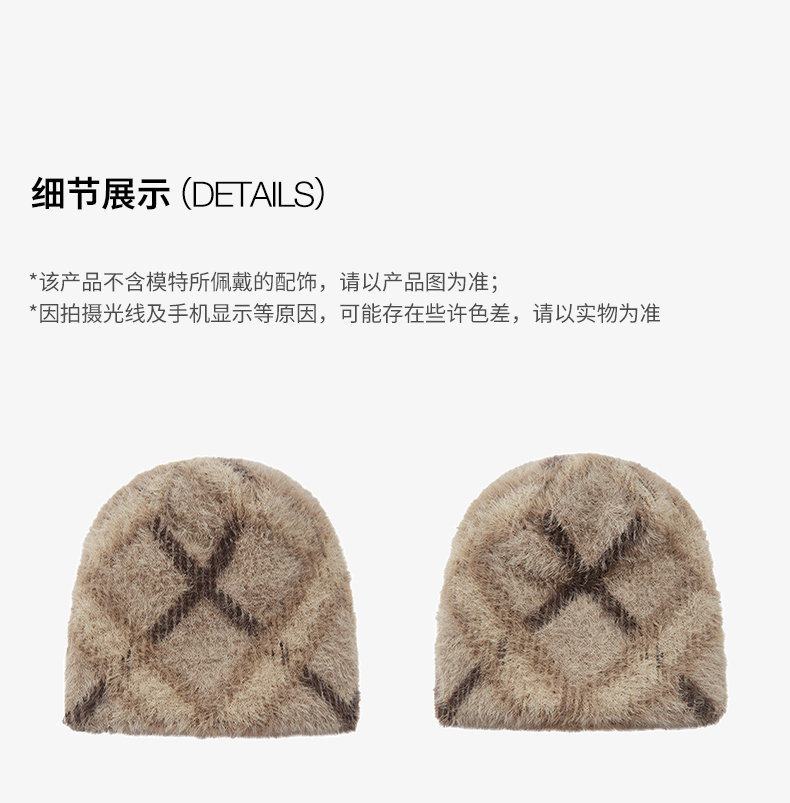 NUTH 正反两面戴保暖格纹毛绒针织冷帽女