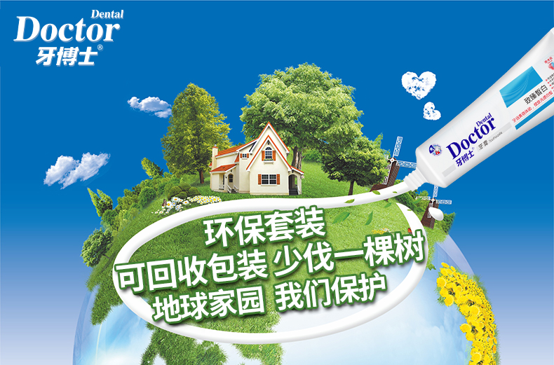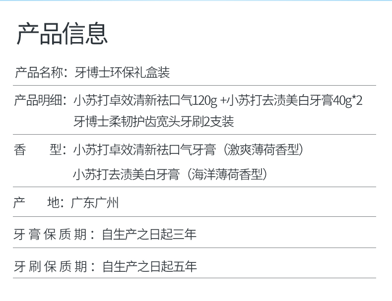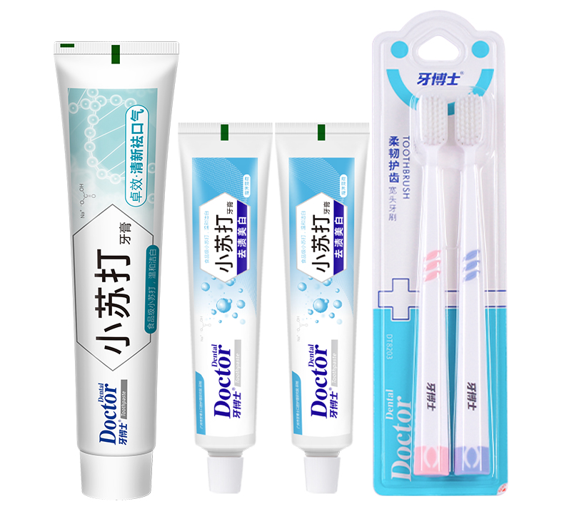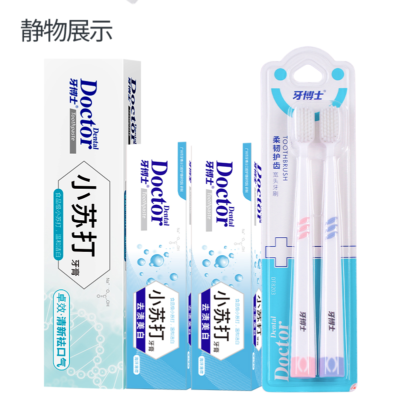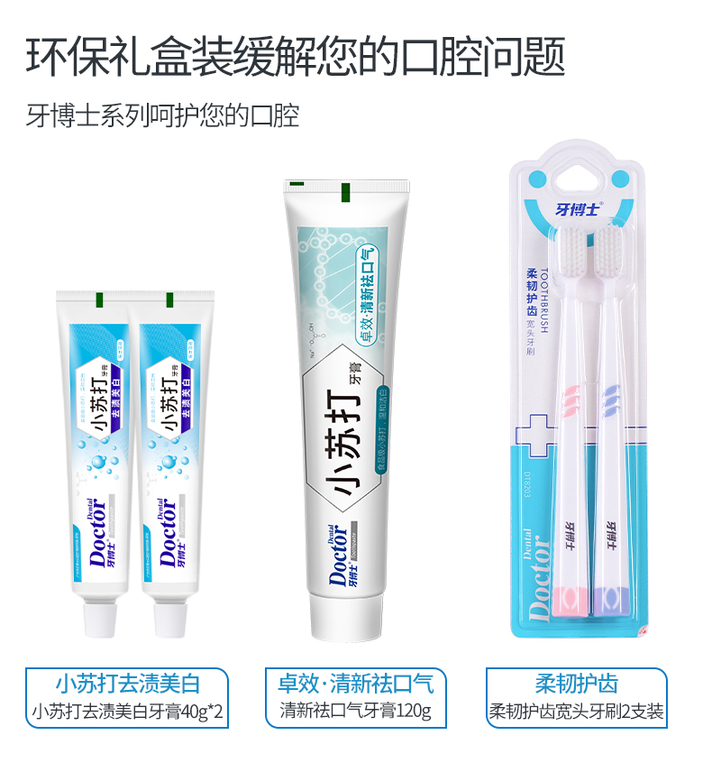 牙博士小苏打牙膏套装环保礼盒120g+40g*2+牙刷*2
