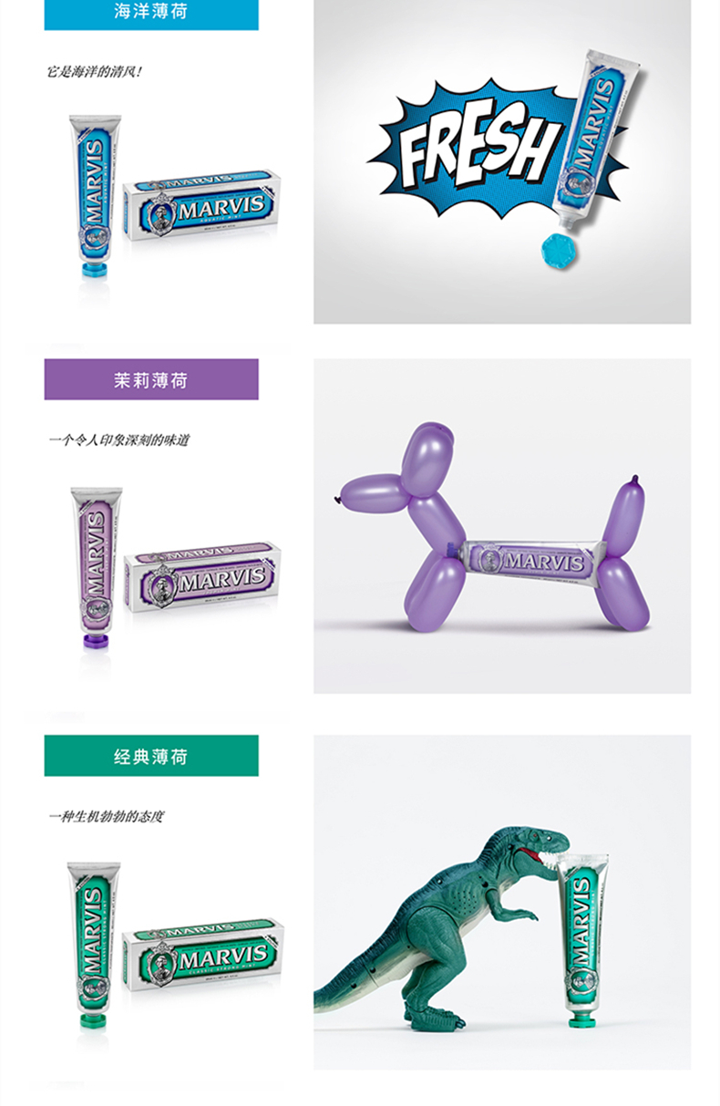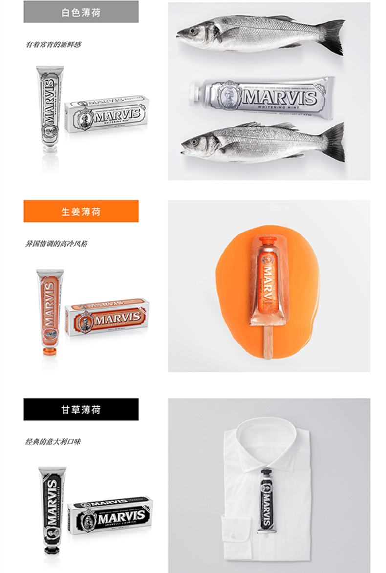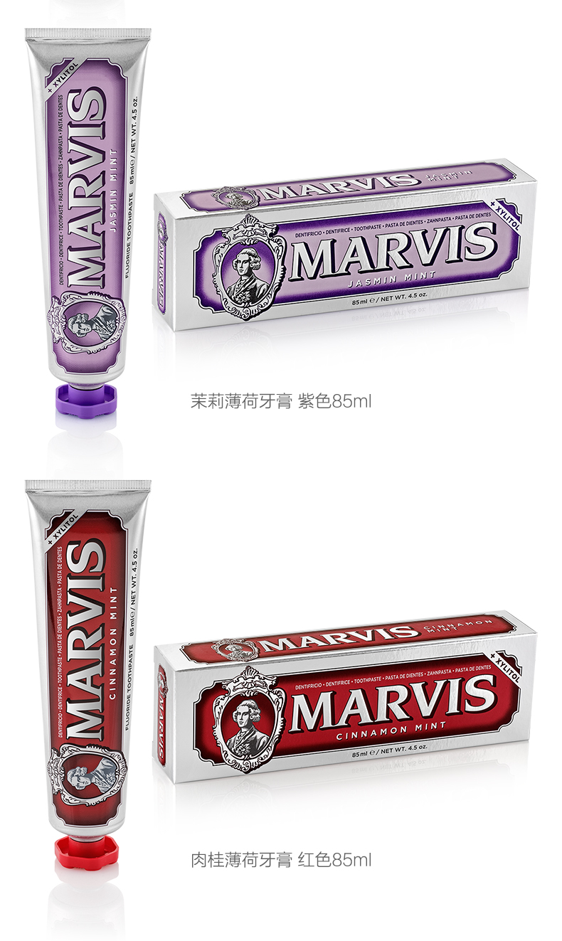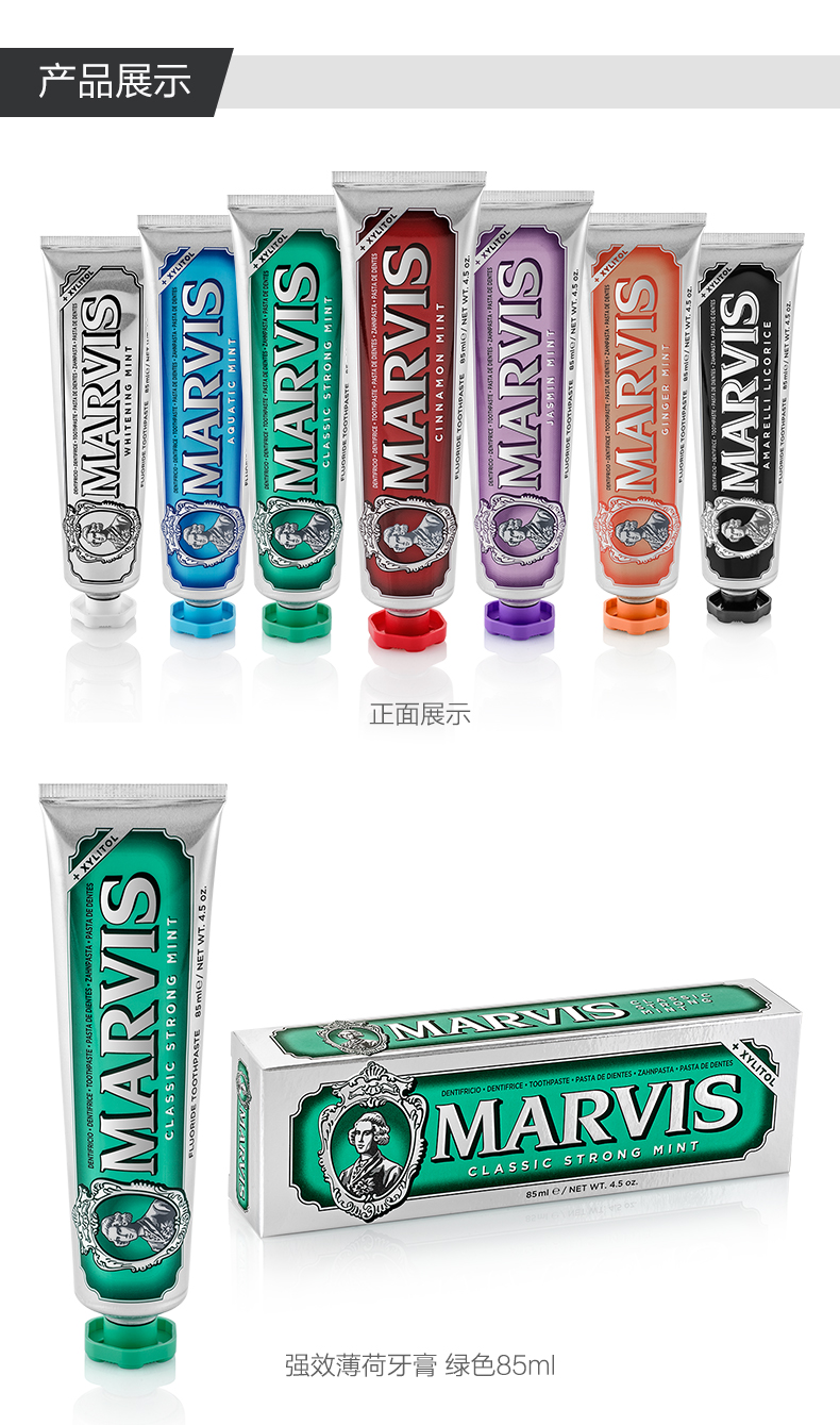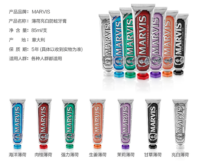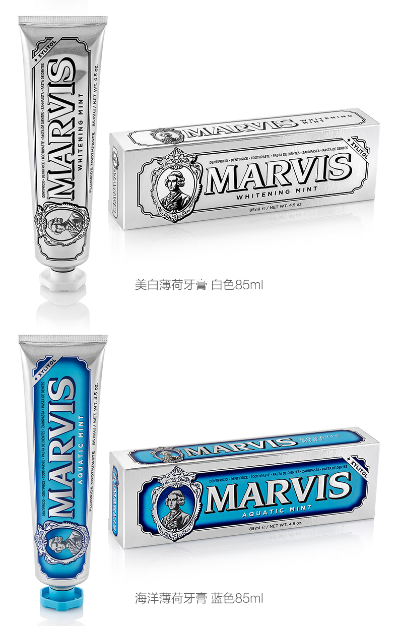 意大利进口 Marvis玛尔仕 防龋净澈皓齿亮白清新口气薄荷牙膏 85ml/支