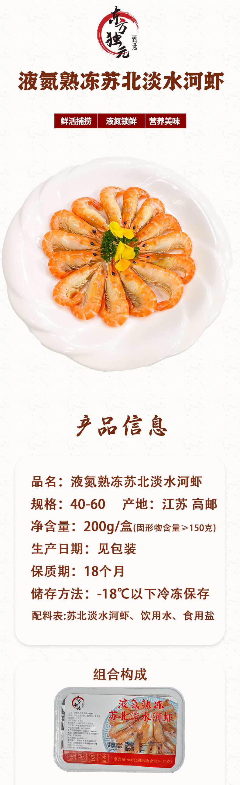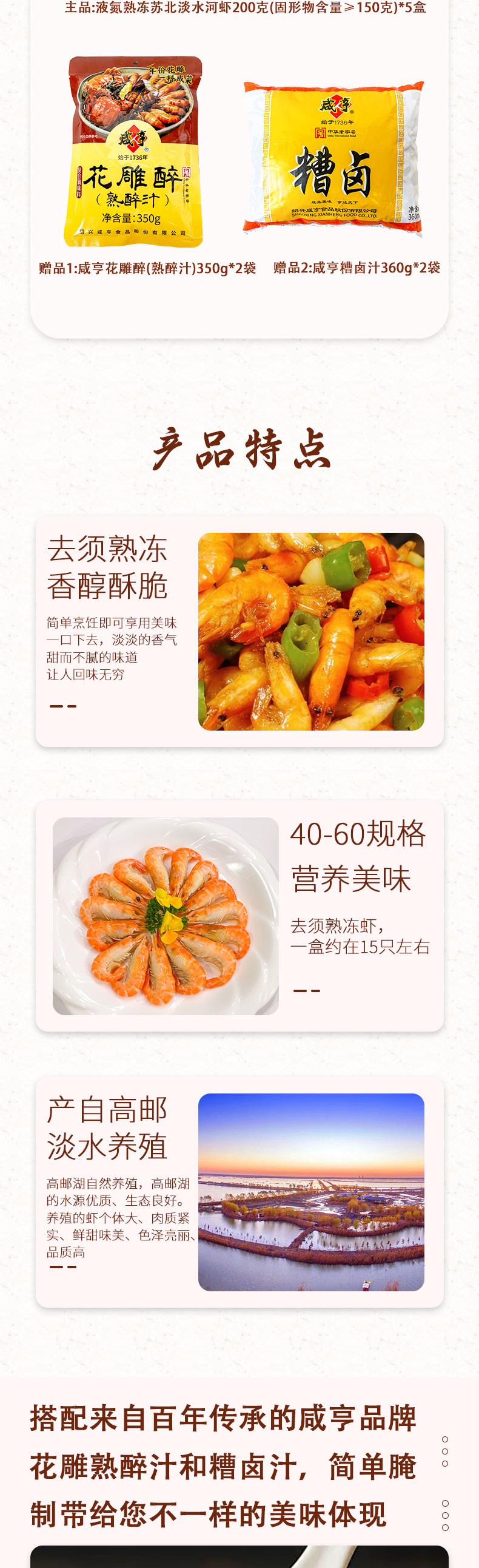 【独元】高邮熟冻虾(去须,4060小规格)200 克/盒(固形物≥ 150 克)*5 盒,加赠:咸亨花雕醉350g*2袋+糟卤汁 360g*2 袋
