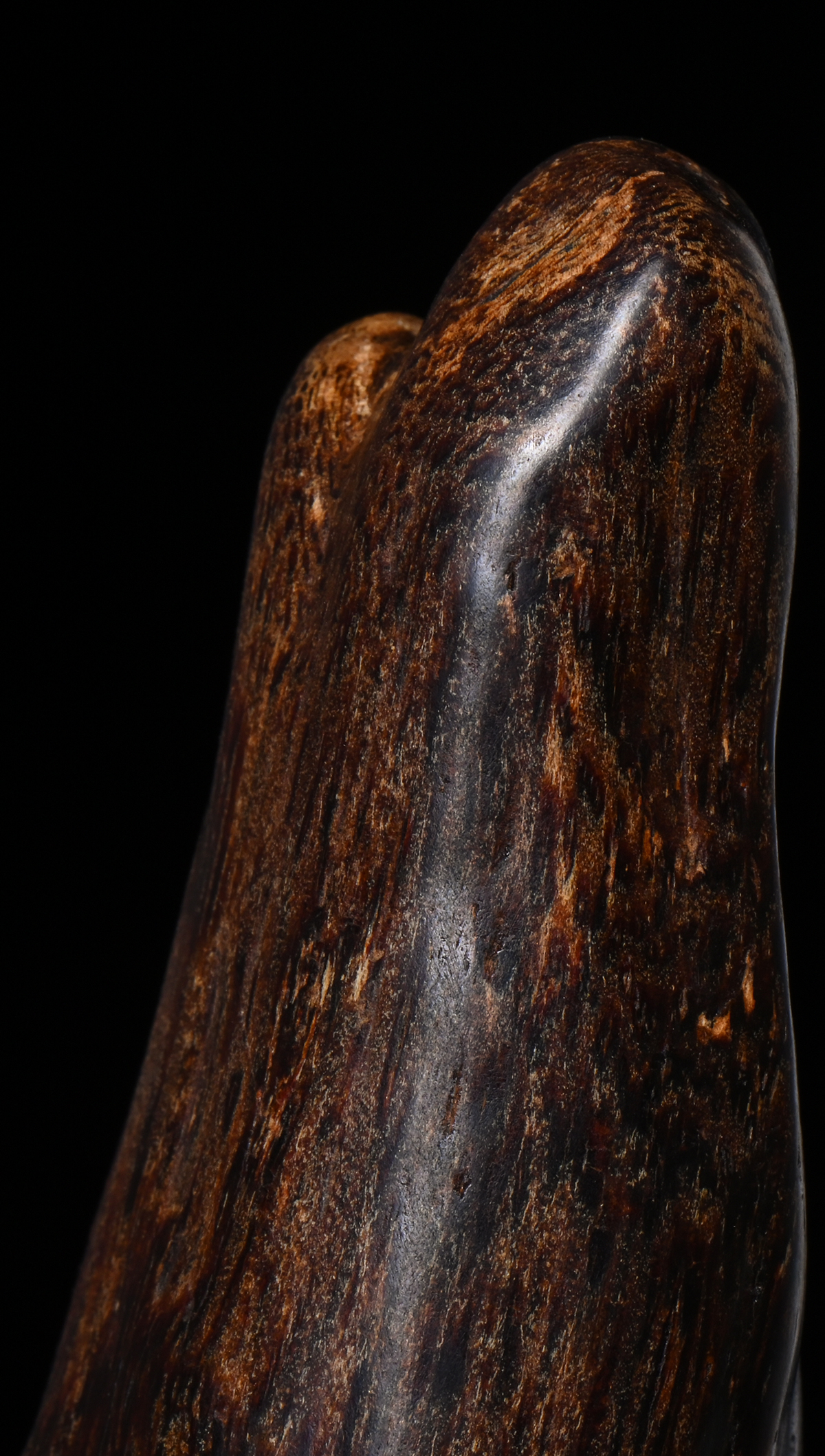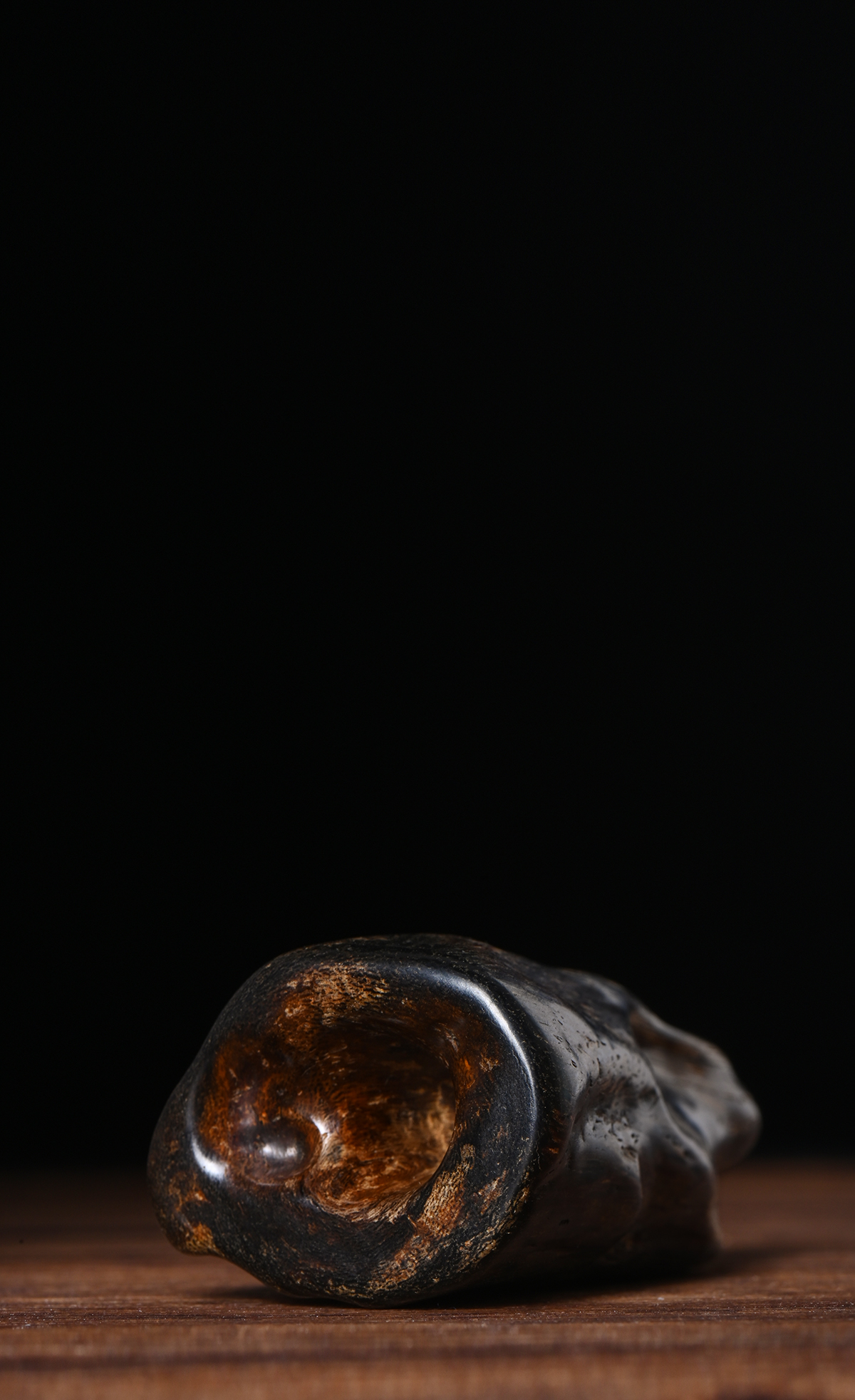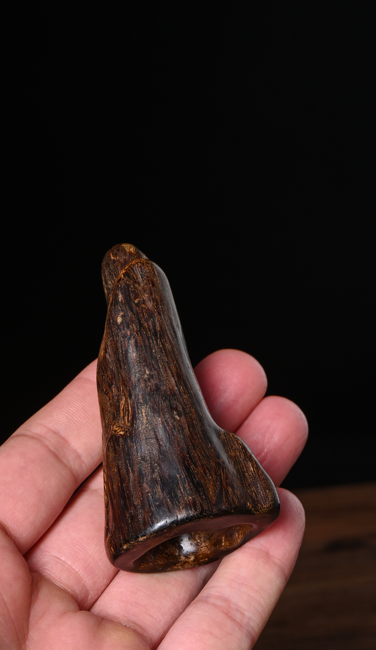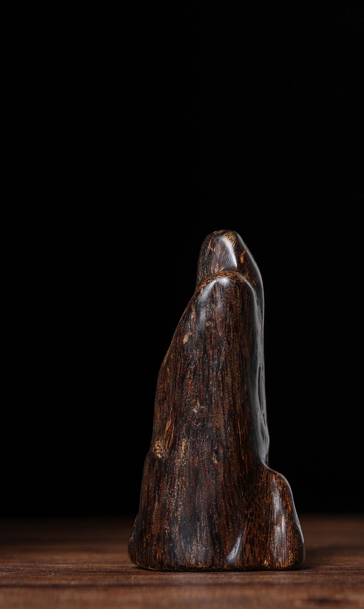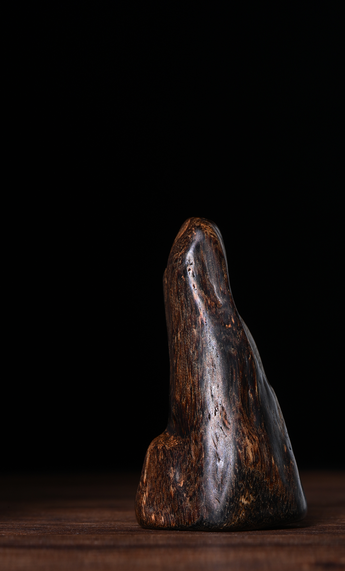 此藏品达拉干黑棋属于高品质的沉香,其油脂含量高、色泽深黑,质地坚硬,表面油润细腻,光泽柔美。