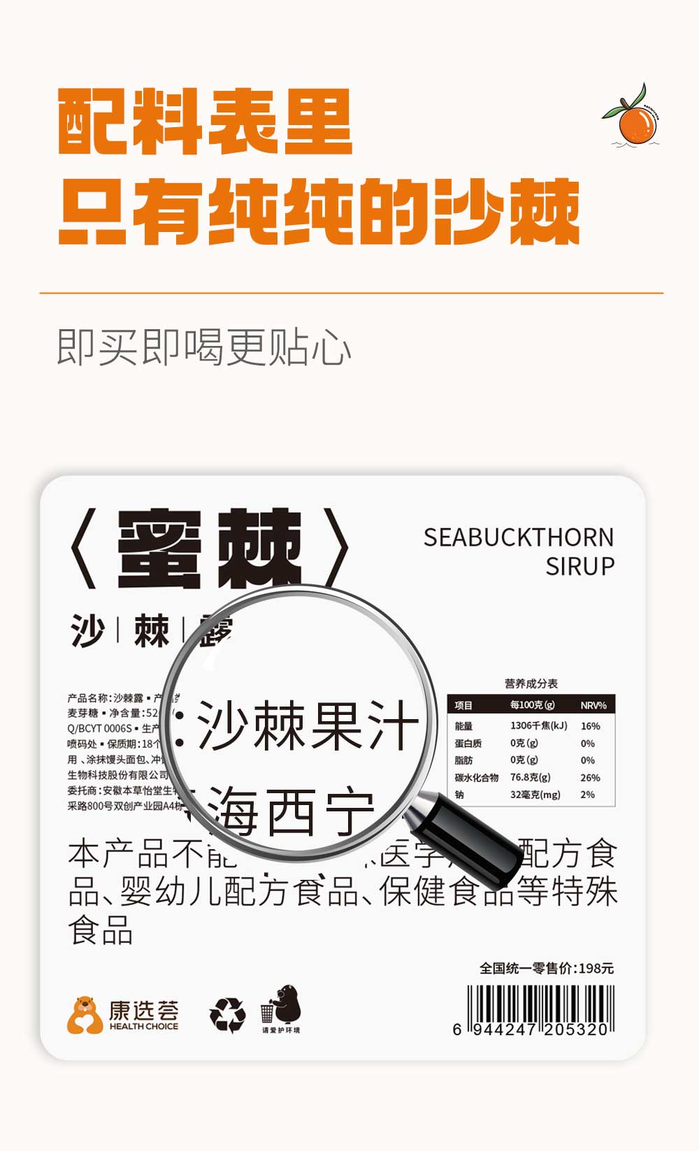 【一乐专属】天下康普青藏高原野生小果沙棘露130g*4/盒 换季必需