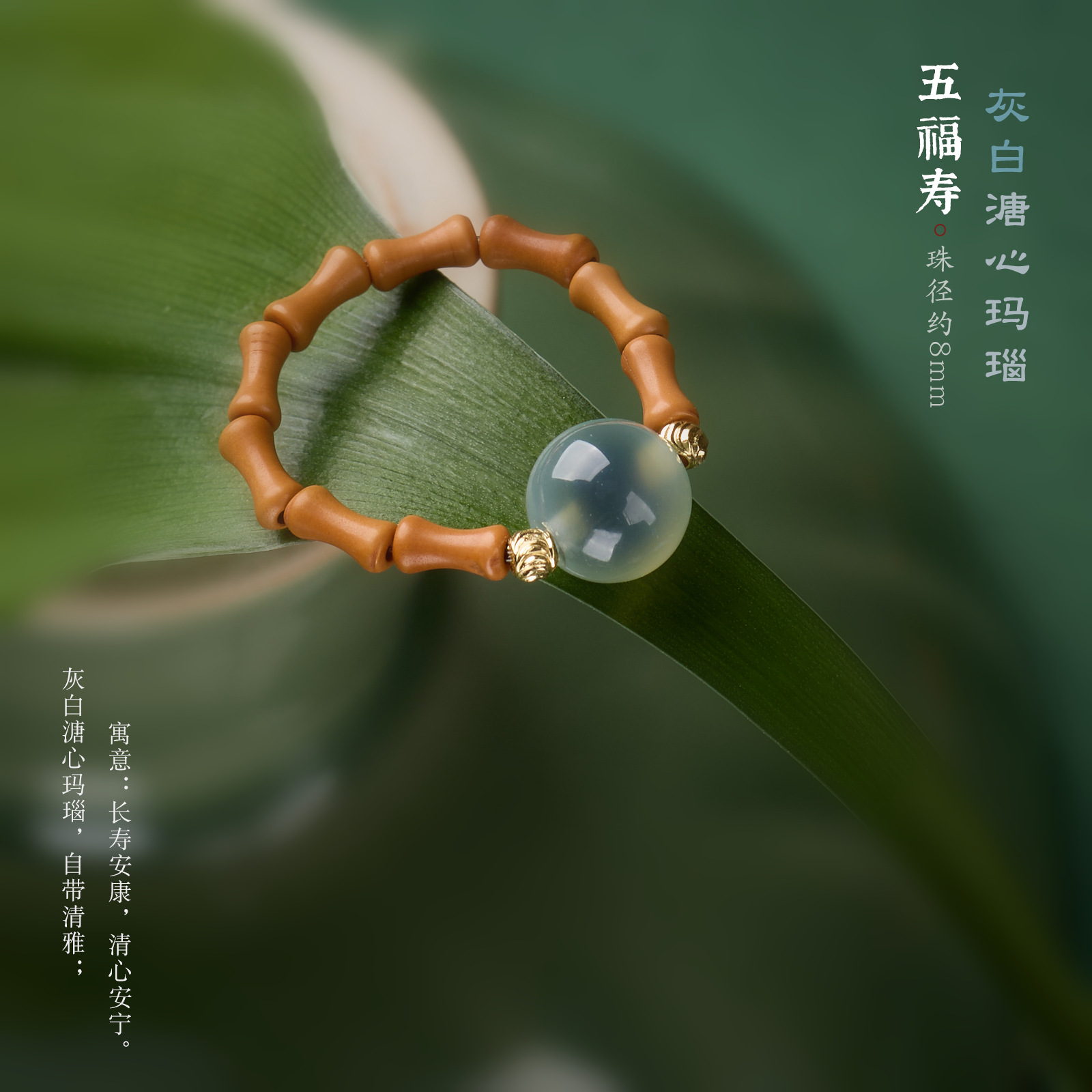 【产品尺寸】糖心玛瑙8mm,橄榄核3*9mm