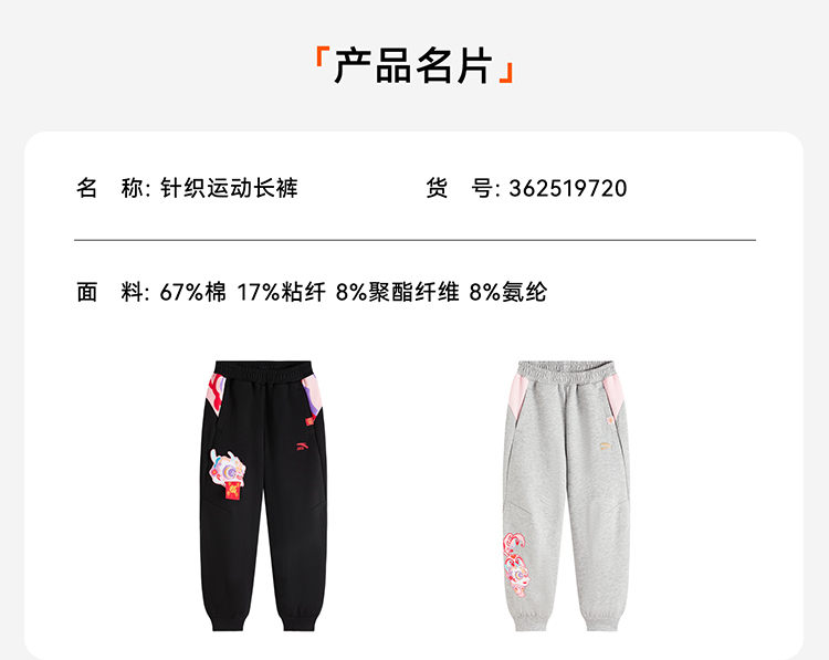新年款安踏儿童女小童蛇年长裤20春季新款拜年裤运动362519720