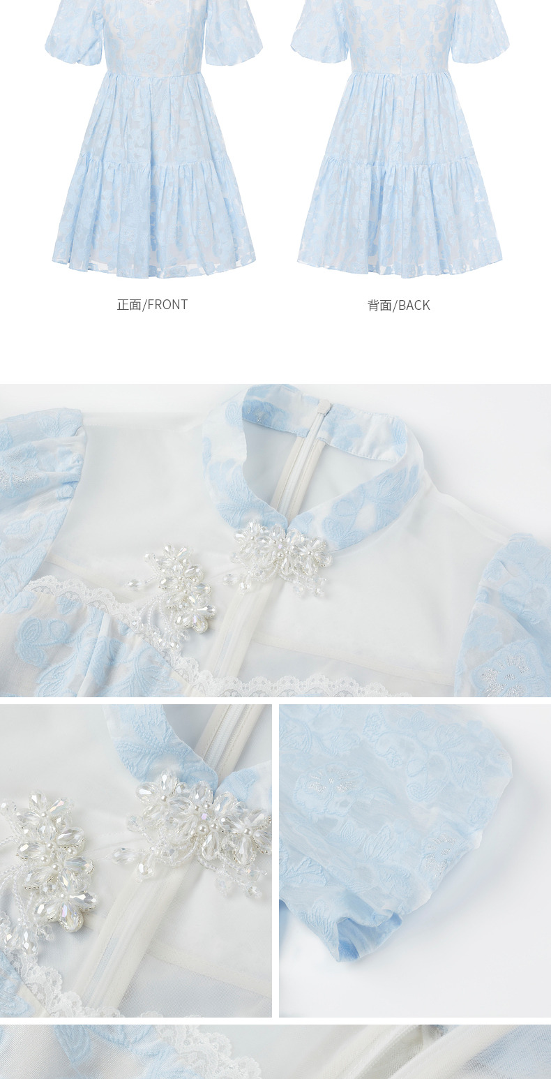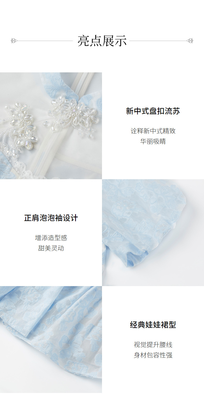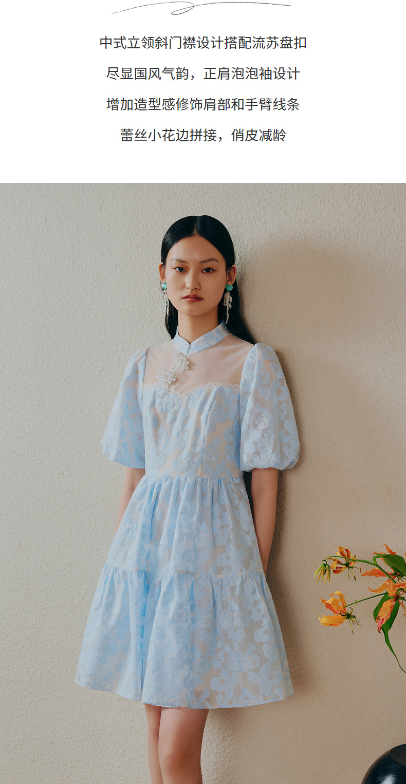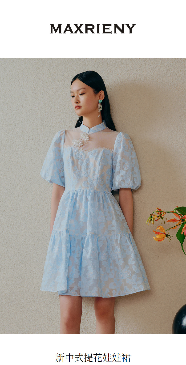 百盛玛克门店发货MAXRIENY国风新中式娃娃裙复古盘扣泡泡袖连衣裙(货号:MC88DR374)