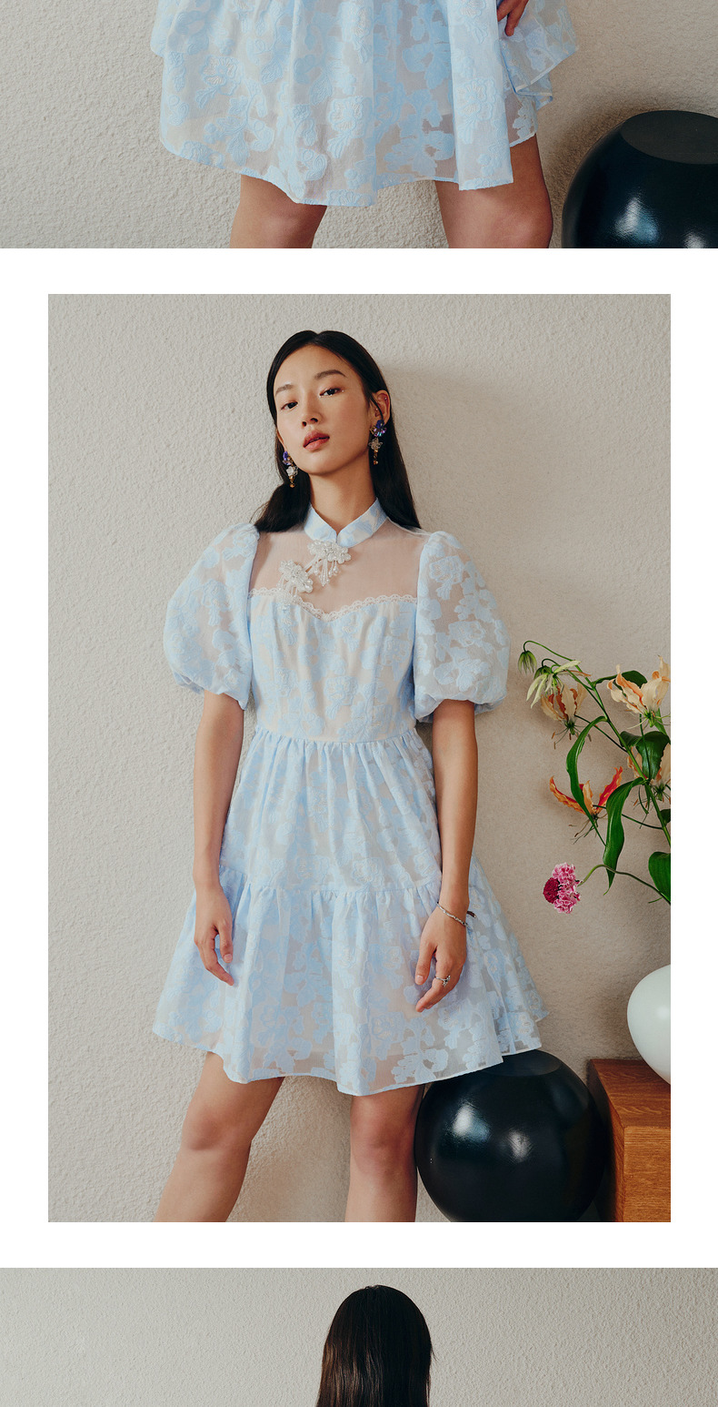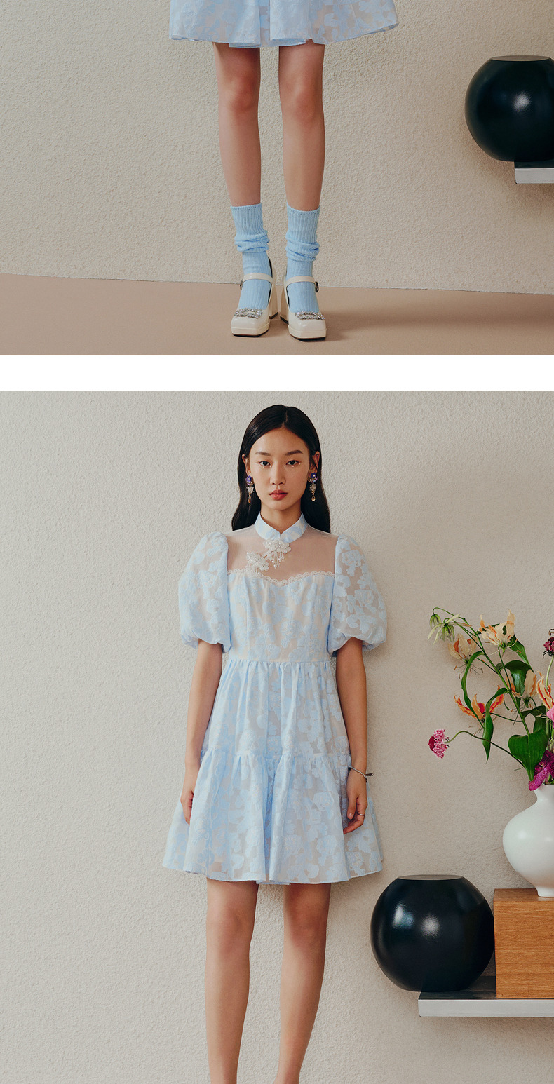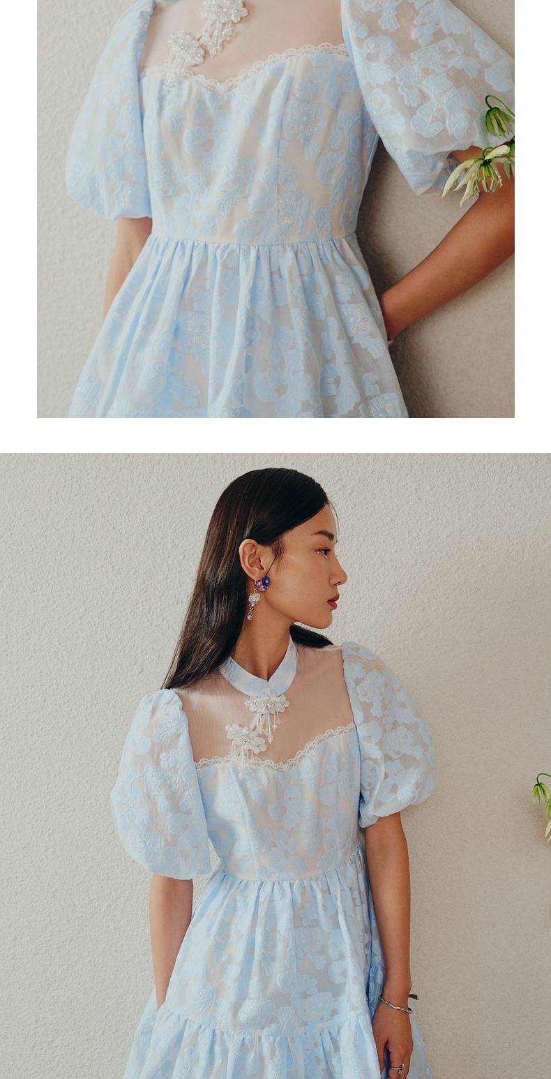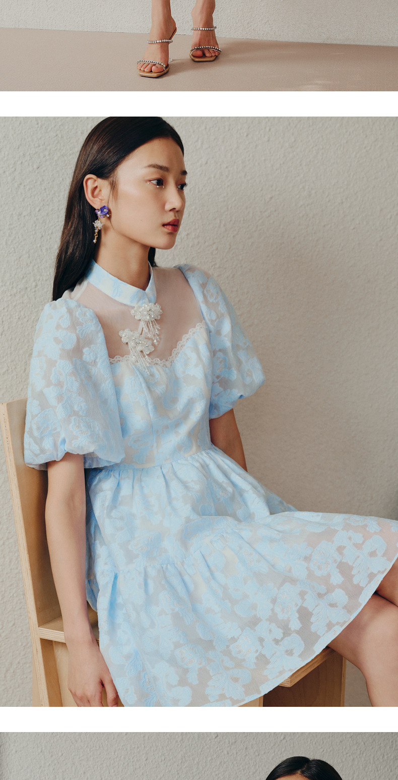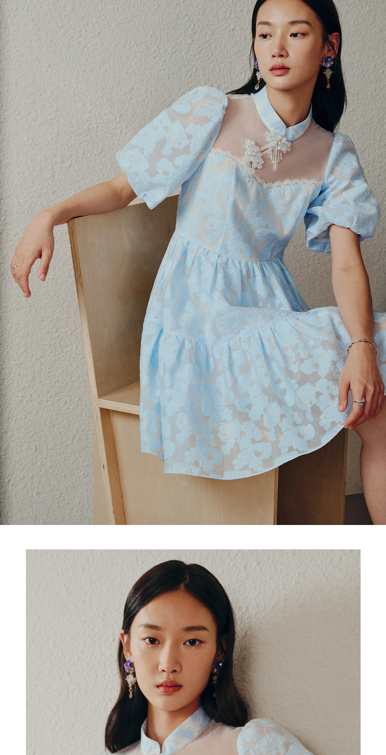 百盛玛克门店发货MAXRIENY国风新中式娃娃裙复古盘扣泡泡袖连衣裙(货号:MC88DR374)