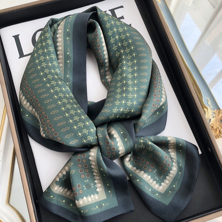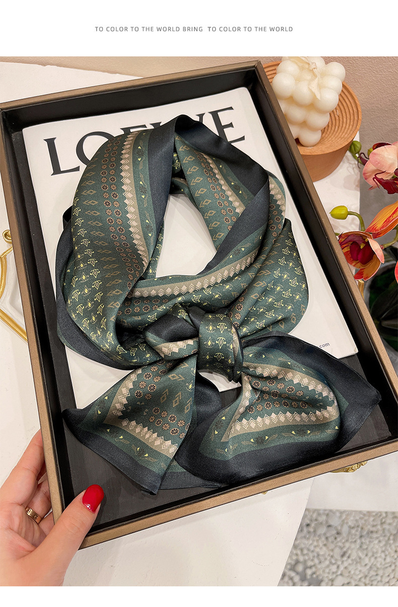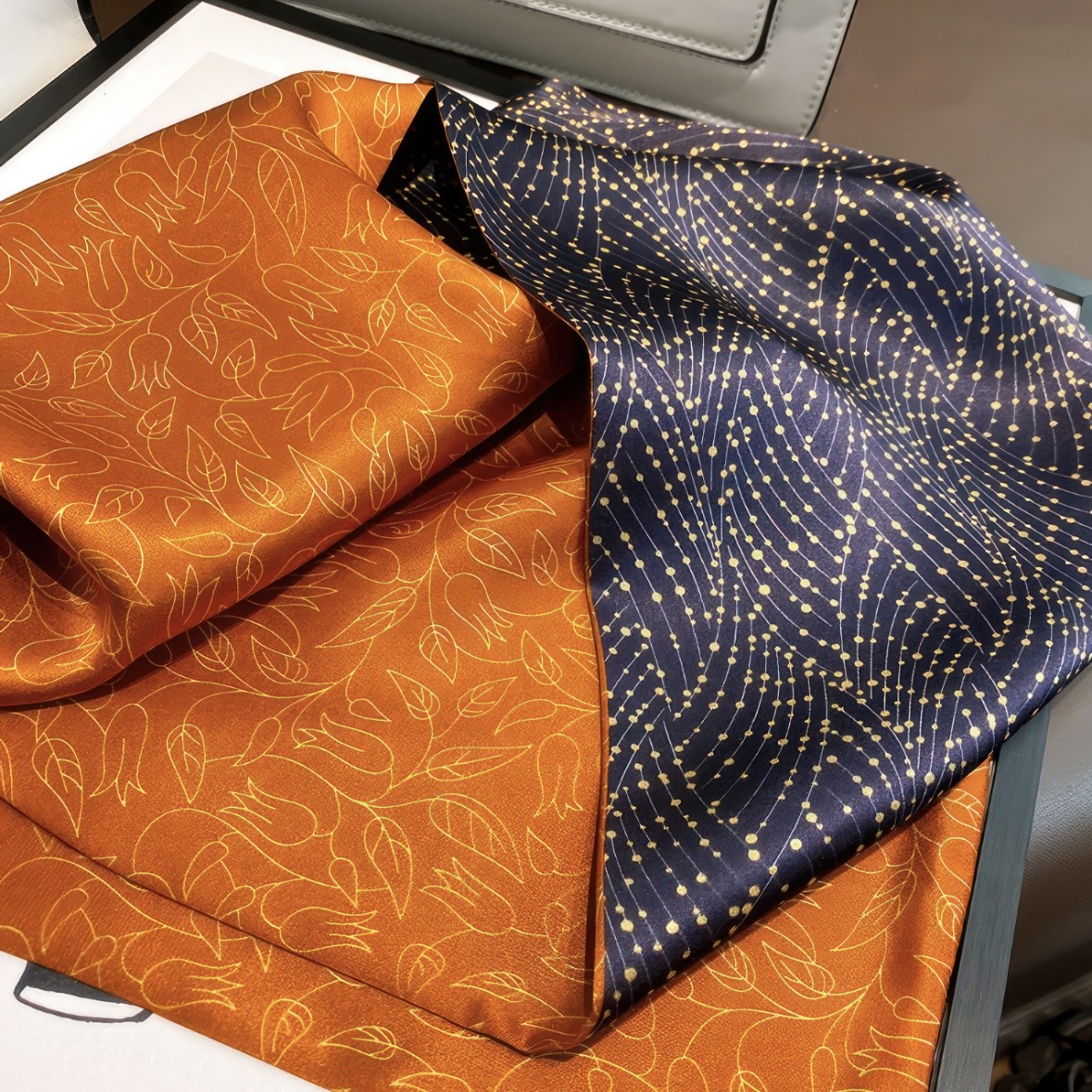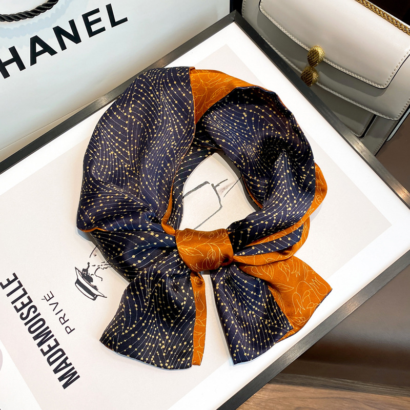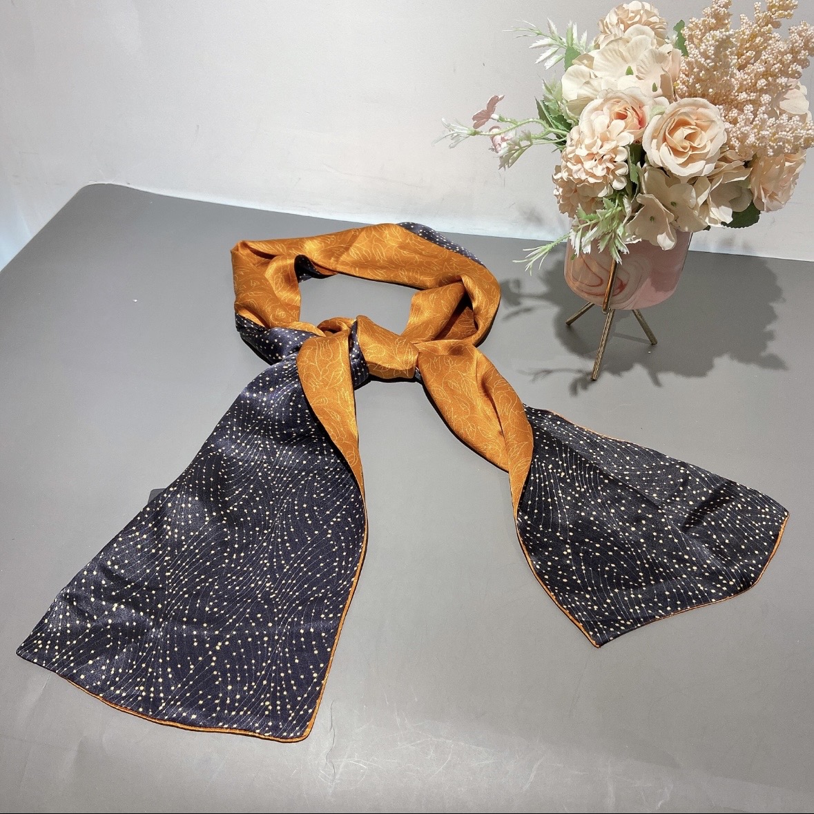 【敦煌长条丝巾】夏季小领巾气质百搭 新款油墨画平角小丝巾 时尚锁骨装饰保暖小领巾发带绑包