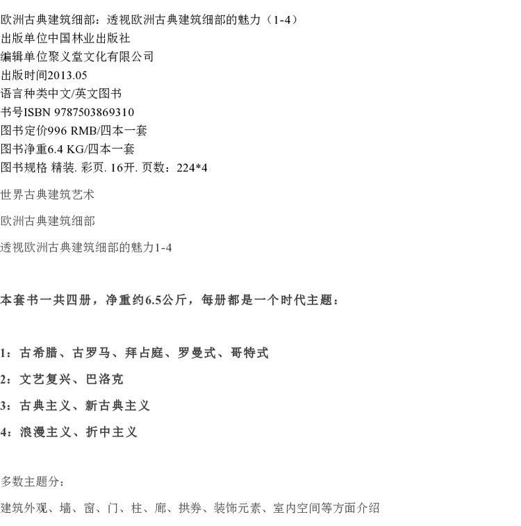 套装 欧洲古典建筑细部 1 2 3 4 合订版 7055 世界古典建筑艺术 中国林业出版社 畅销书