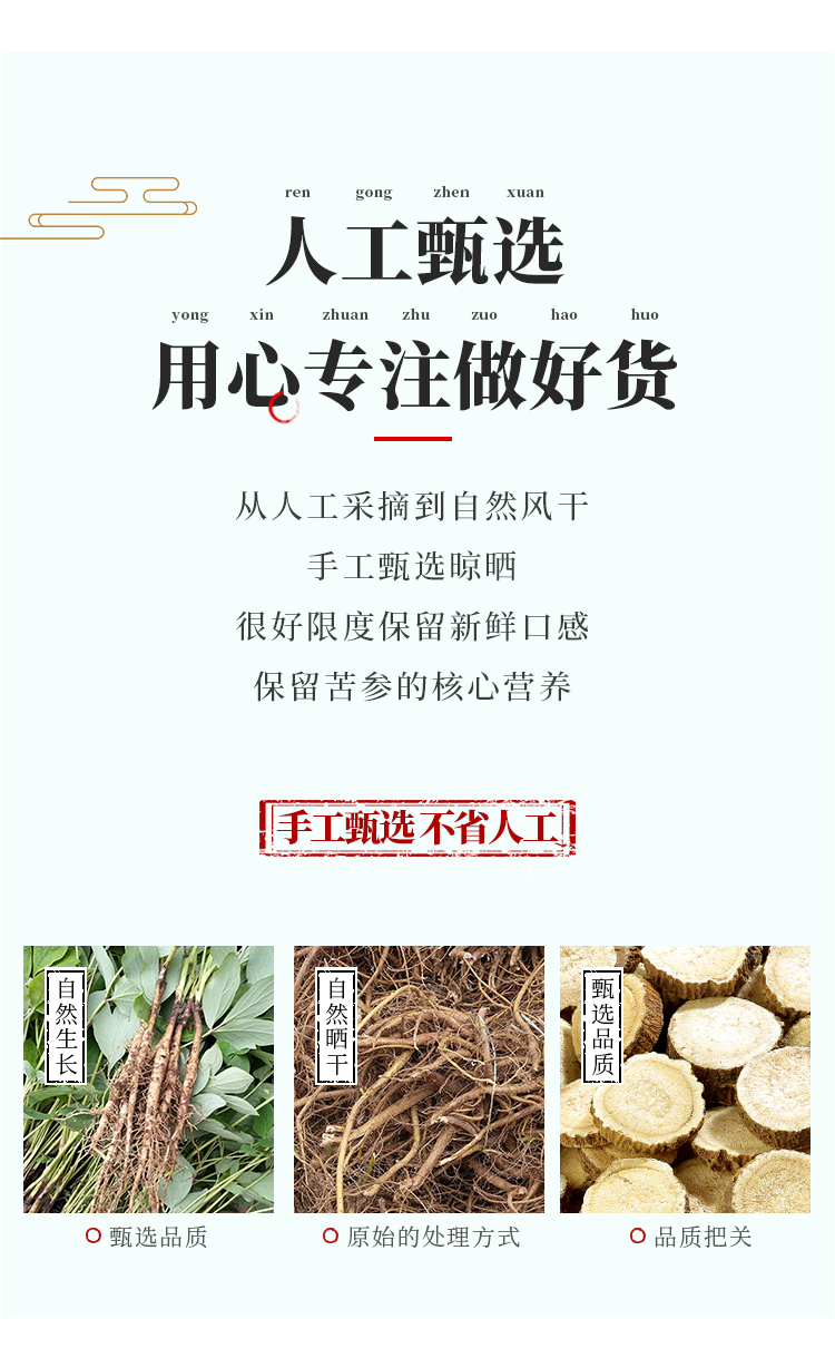 在菌屋 云南大片野生苦参250g/罐 自然晾晒 参味浓郁