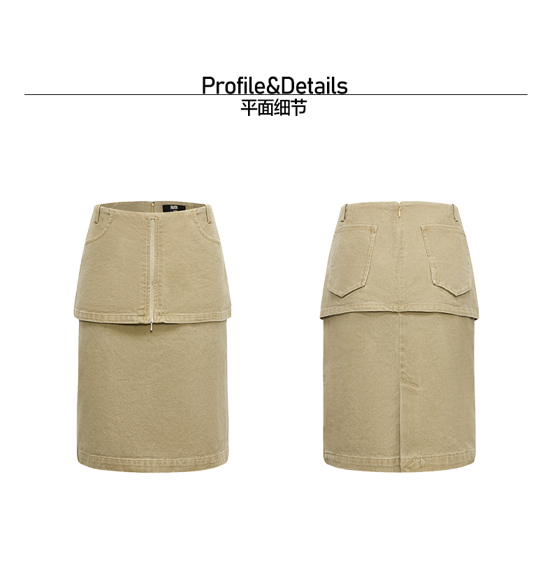 NUTH复古通勤工装半身裙女 卡其色
