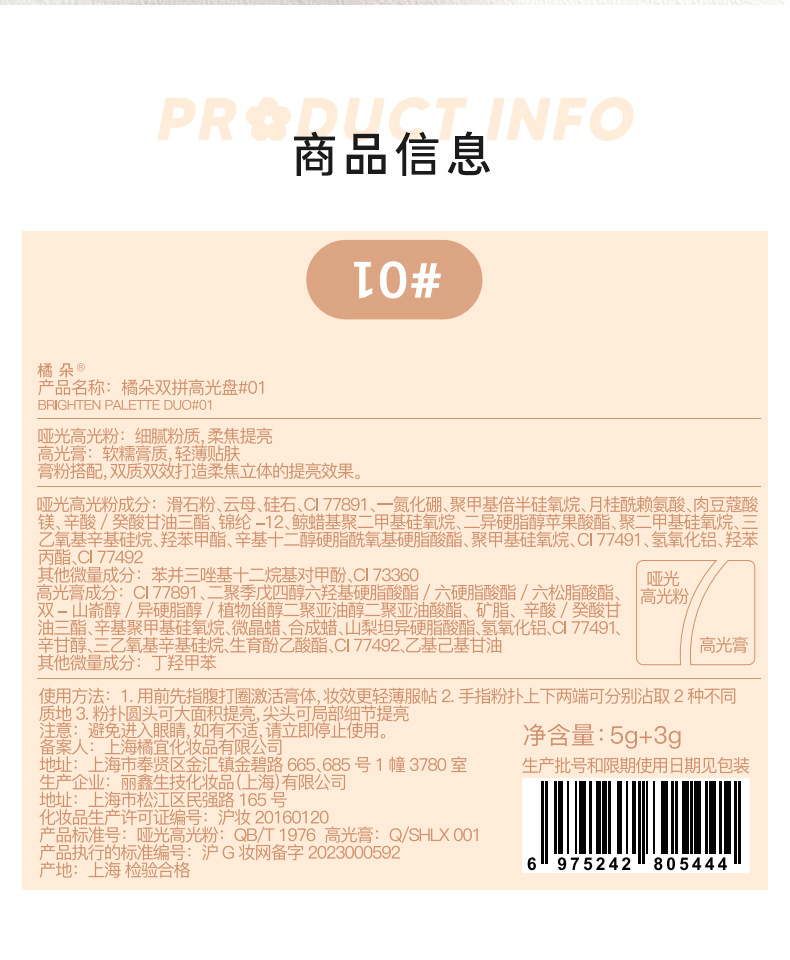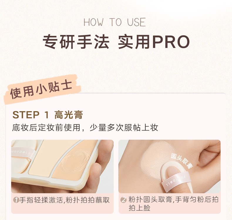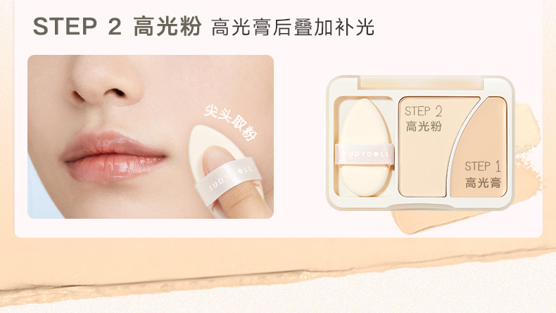 Judydoll橘朵双拼高光盘哑光粉高光膏提亮脸部立体高光修容盘 心选到家