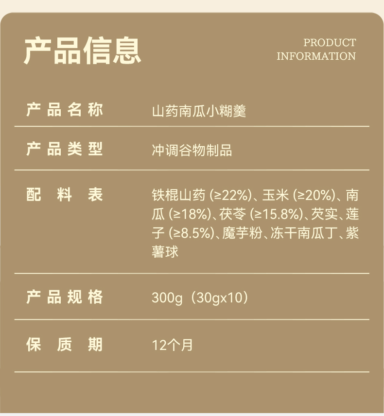 甘之颐 山药南瓜小糊羹 30g*10包/盒 一餐6味好食材 为脾胃护航 健康早餐