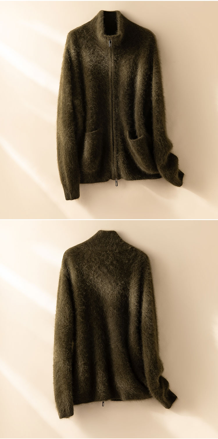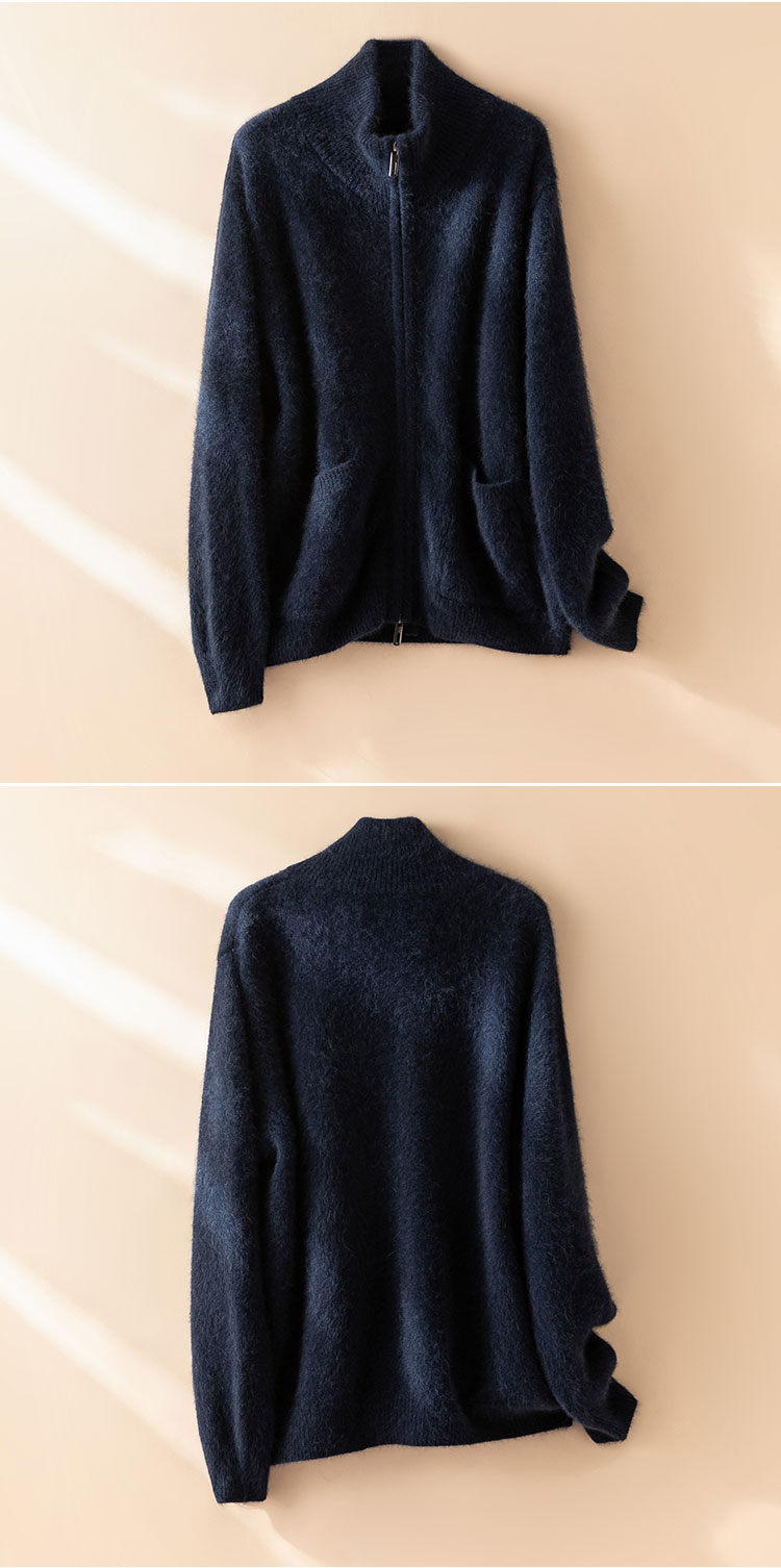 北美小动物系列~半高领双拉链开衫毛衣女宽松加厚外套XDW250502