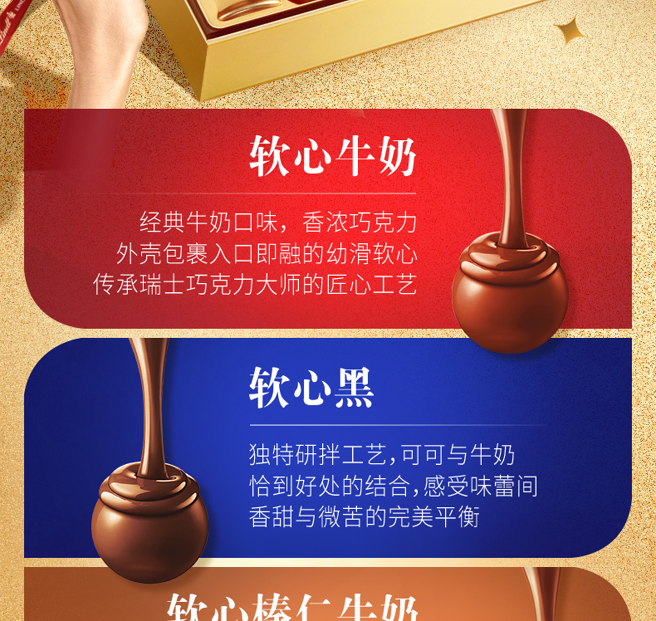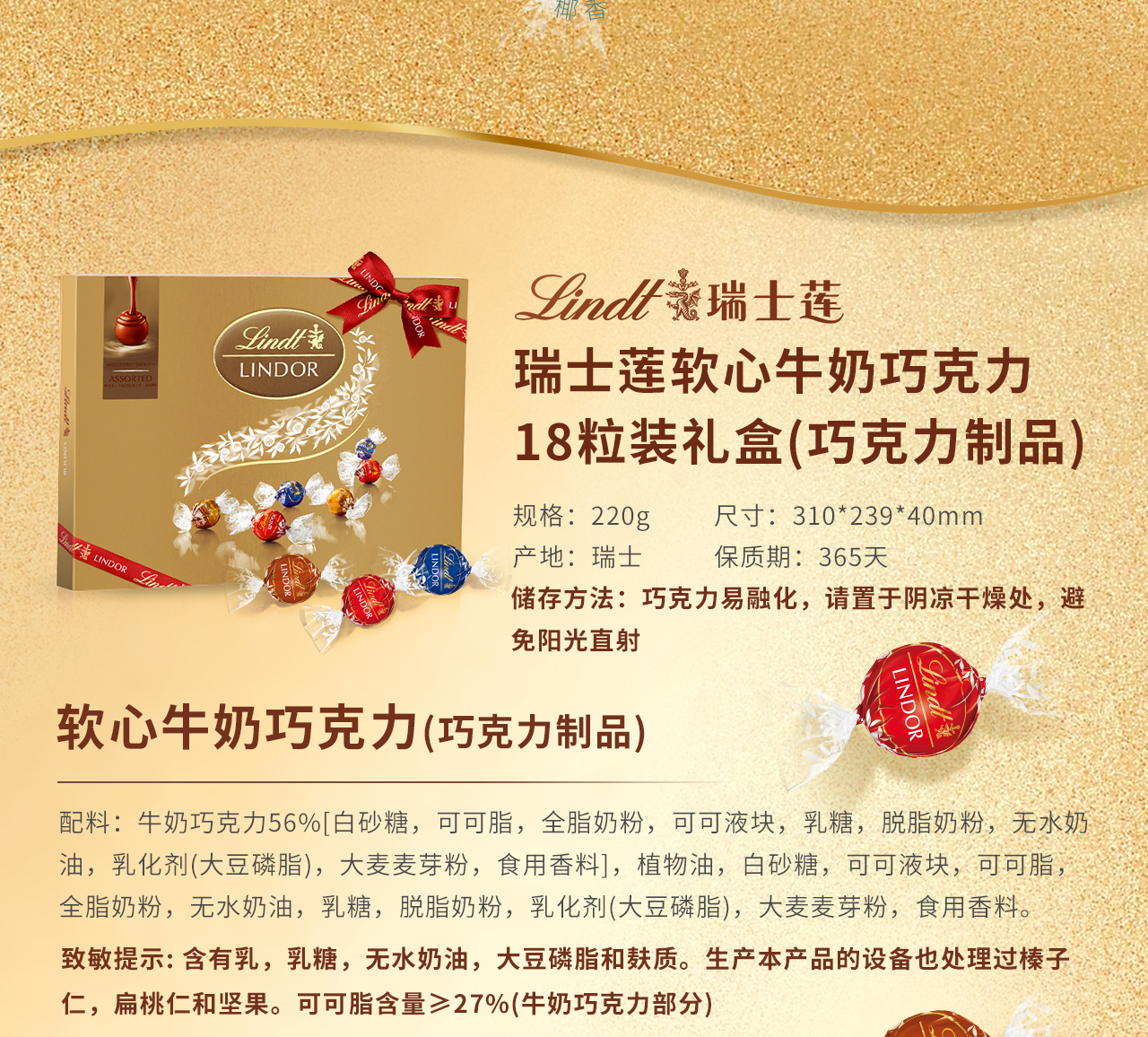 【瑞士莲】软心精选巧克力礼盒220g(18粒)