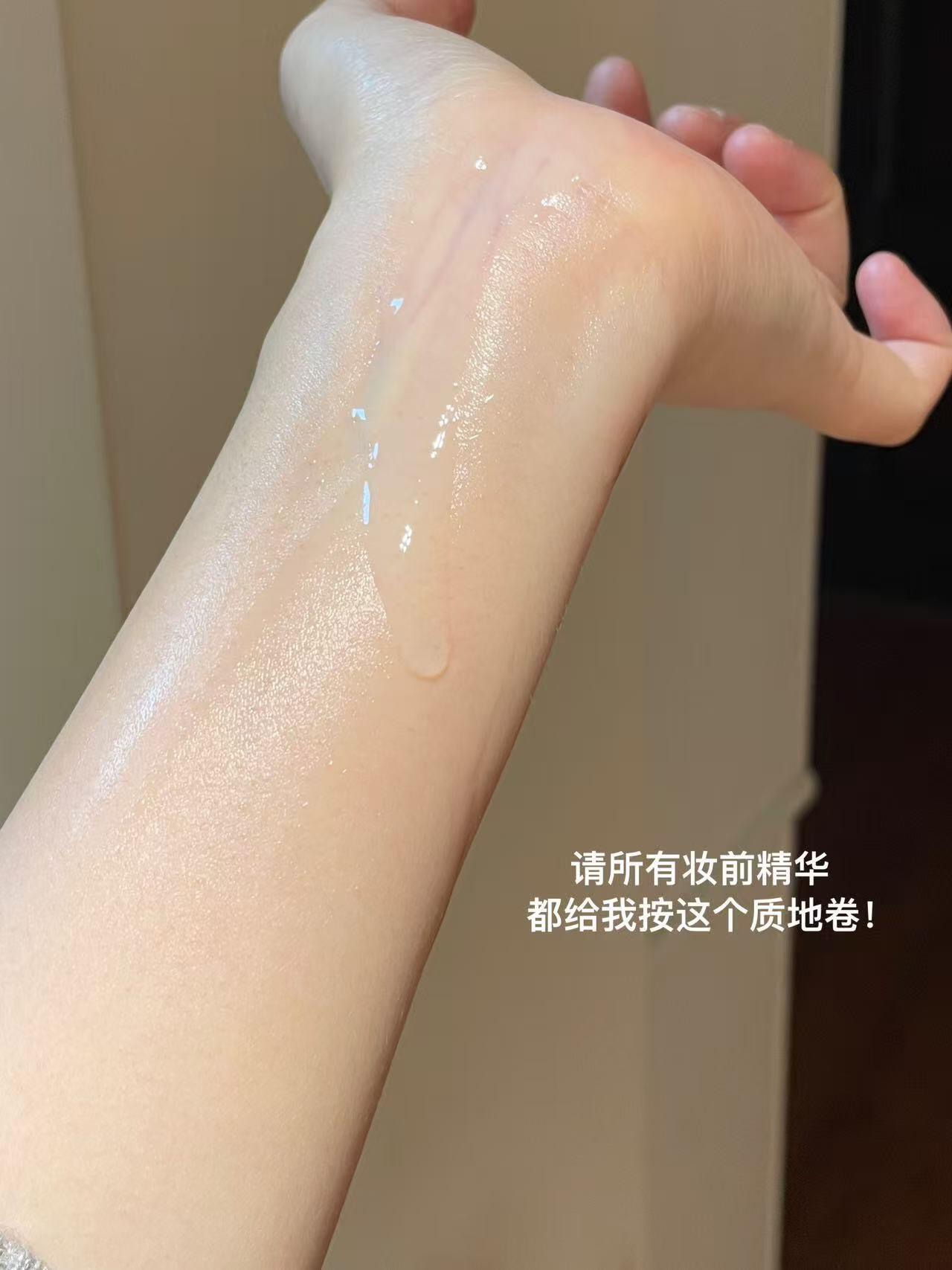 早上赶时间,我就洗完脸拍2泵,按摩30秒吸收后直接上妆,后续粉底扒得超牢,鼻翼、嘴角这些容易卡粉的地方,