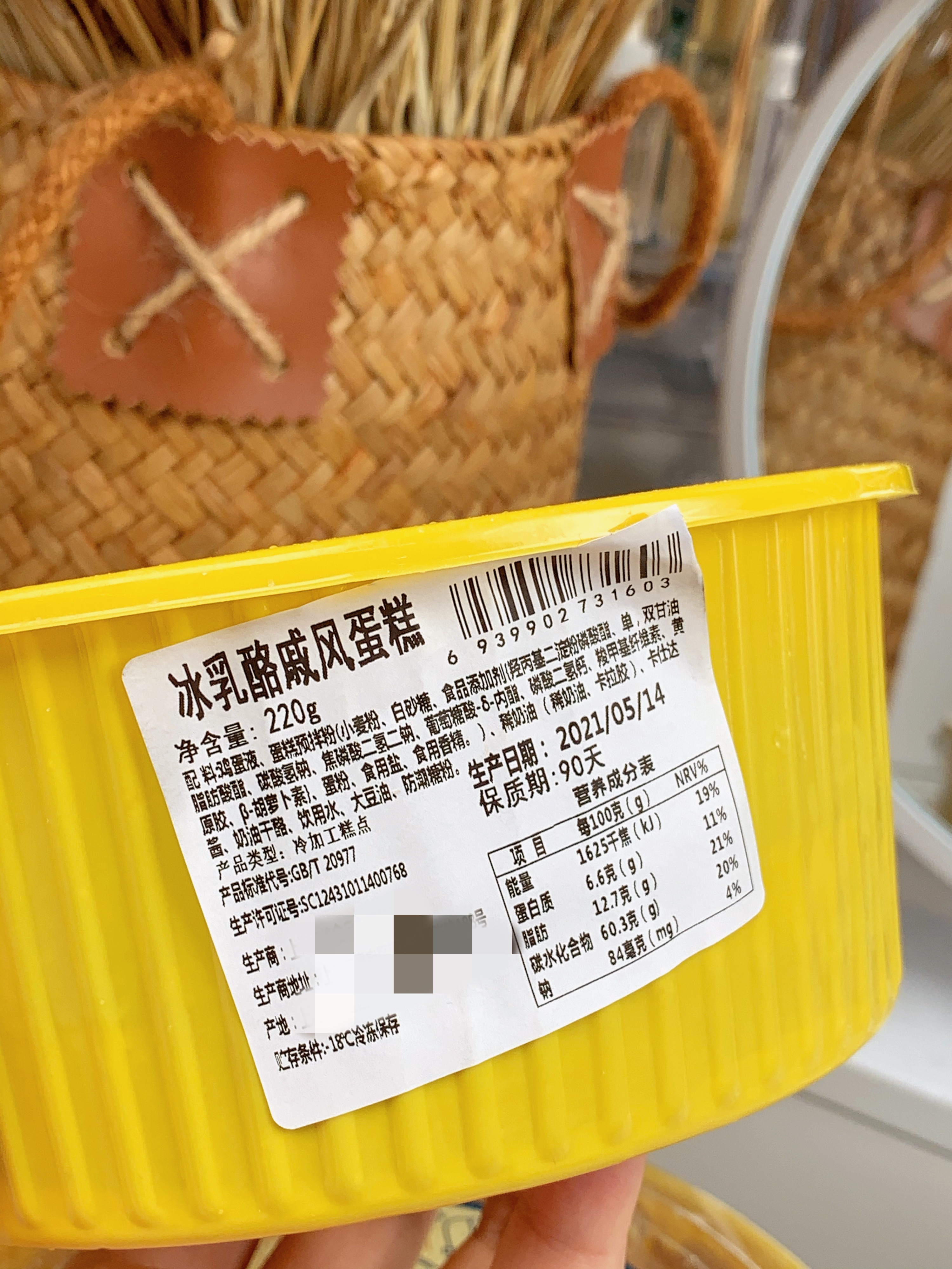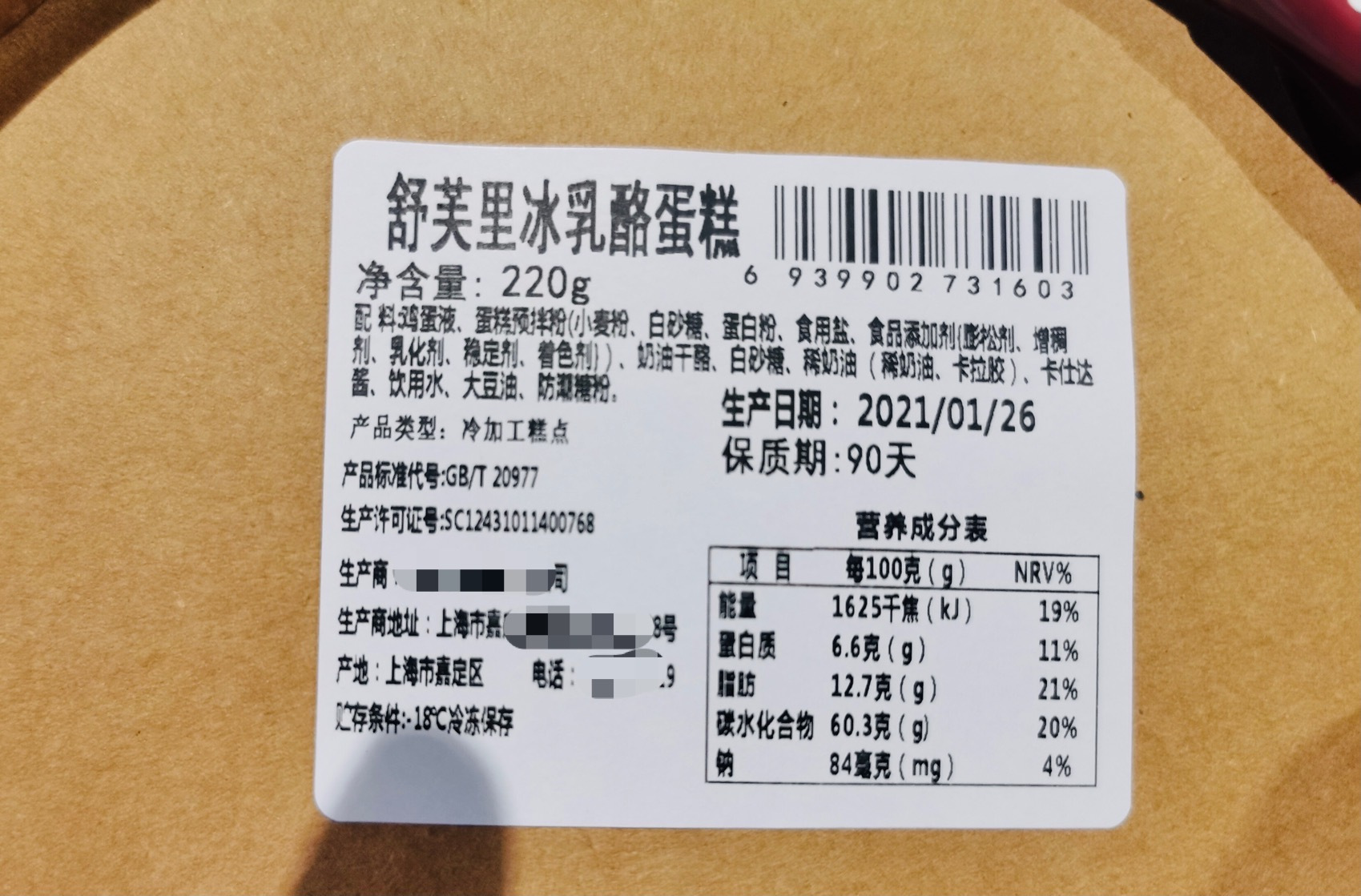 【产品名称】:舒芙里-冰乳酪戚风蛋糕 【产品配料】:鸡蛋液、蛋糕预拌粉、奶油干酪、白砂糖、稀奶油、泡打粉、稳定剂... 【规格】:220g/个*2 【包装】泡沫箱+冰袋+独立盒装+干冰 【发货地】上海闵行 【保质期】常温3-5天,冷冻90天 全程冷链发货,且配有冰袋和保温箱 【储存方式】-18℃冷冻保存 【发货快递】顺丰 【发货时间】3-5天发货(除周末节假日,快递爆仓和恶劣天气外) 【不发货区域】顺丰快递,新疆/西藏/青海/甘肃/内蒙/宁夏/海南,河南郑州/商丘、南京江宁区不发。 【食用方式】即食 一旦发货,无质量问题不退换哦,请谅解
