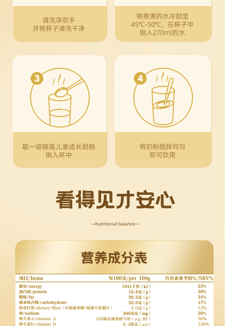 宜品臻高儿童成长高钙奶粉铁锌生牛乳学生营养配方奶粉800g