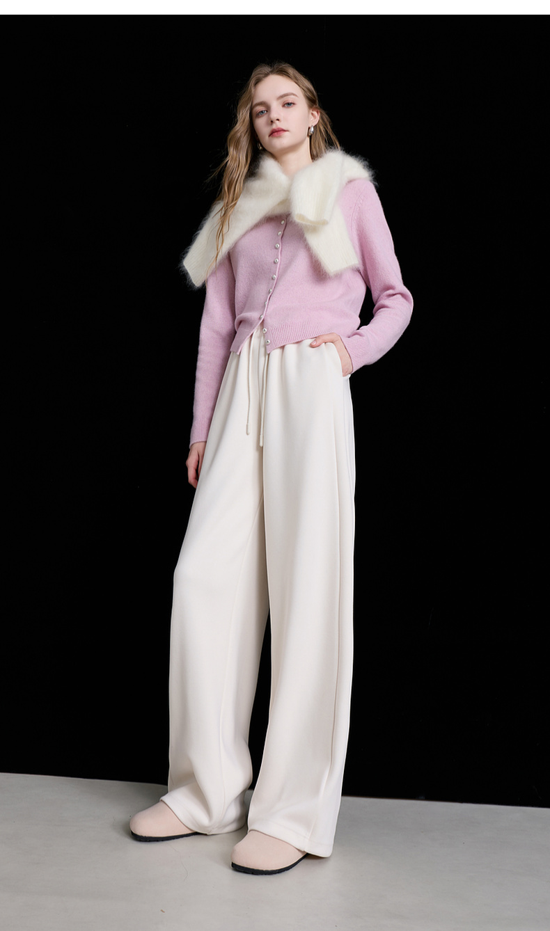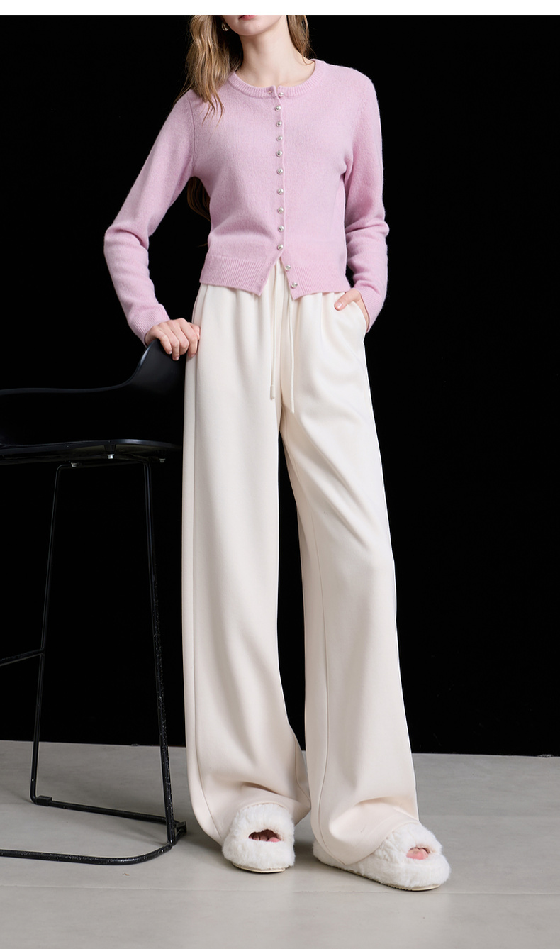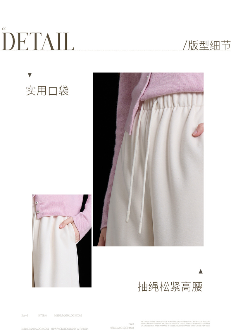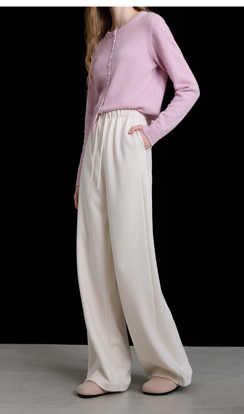 三彩2025冬季新款松紧高腰阔腿裤慵懒休闲长裤宽松垂感显瘦M