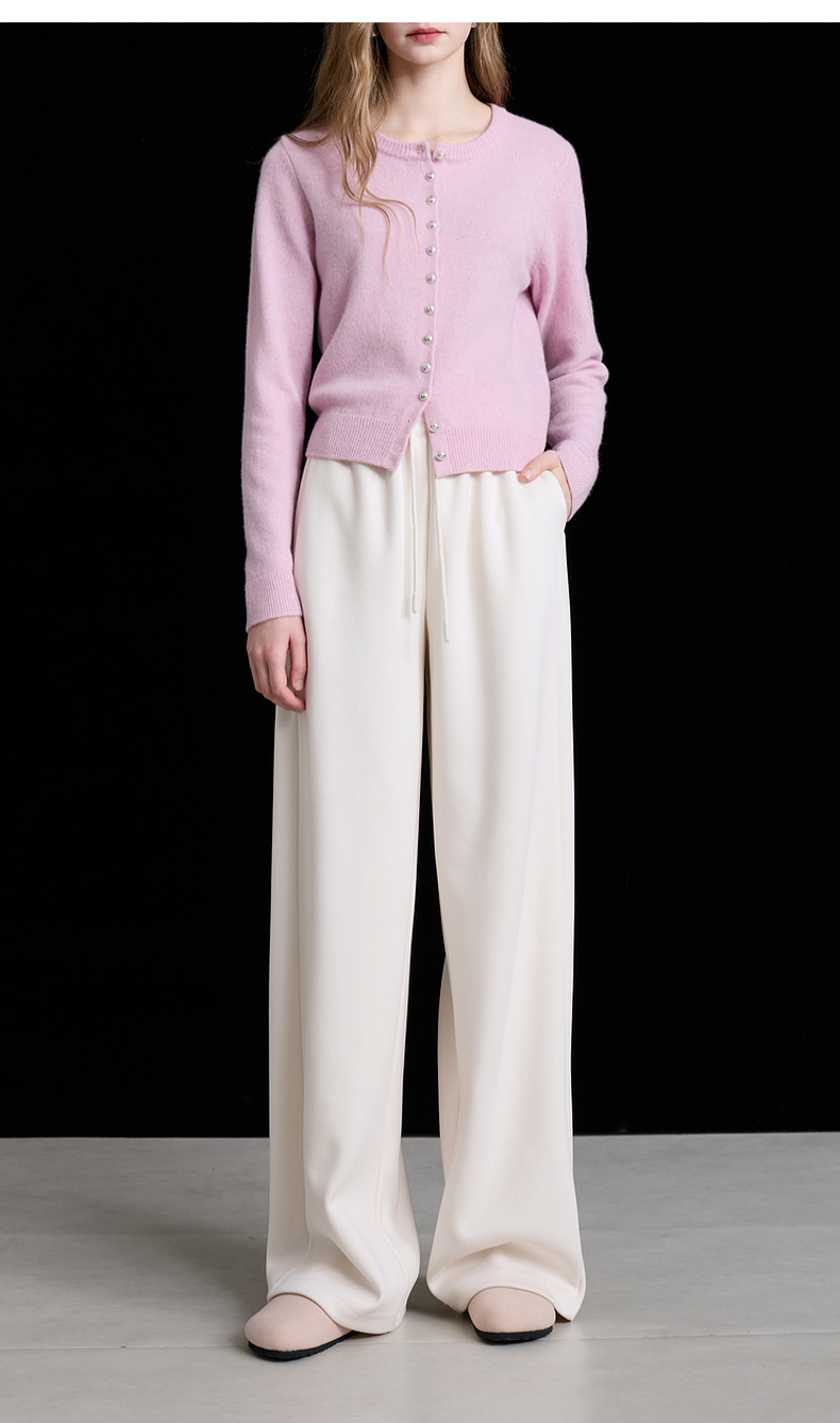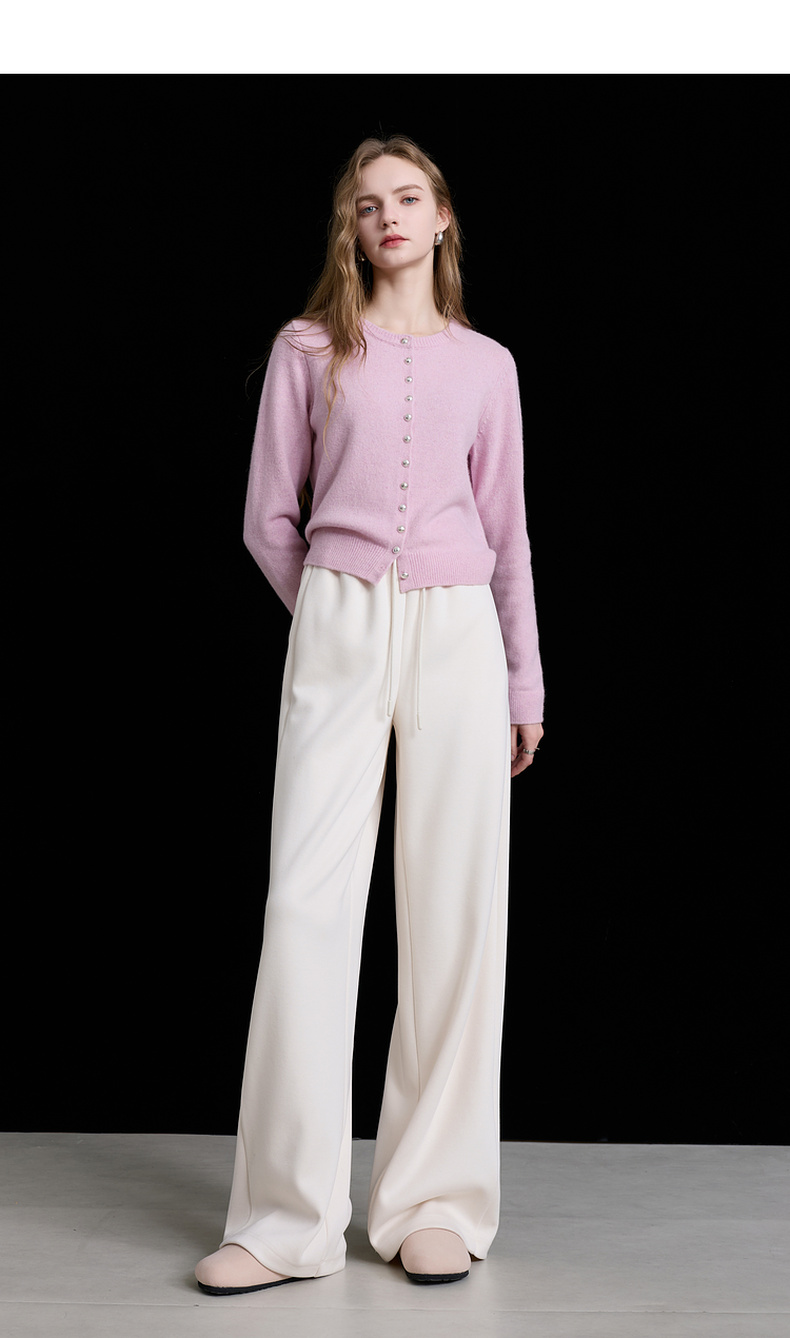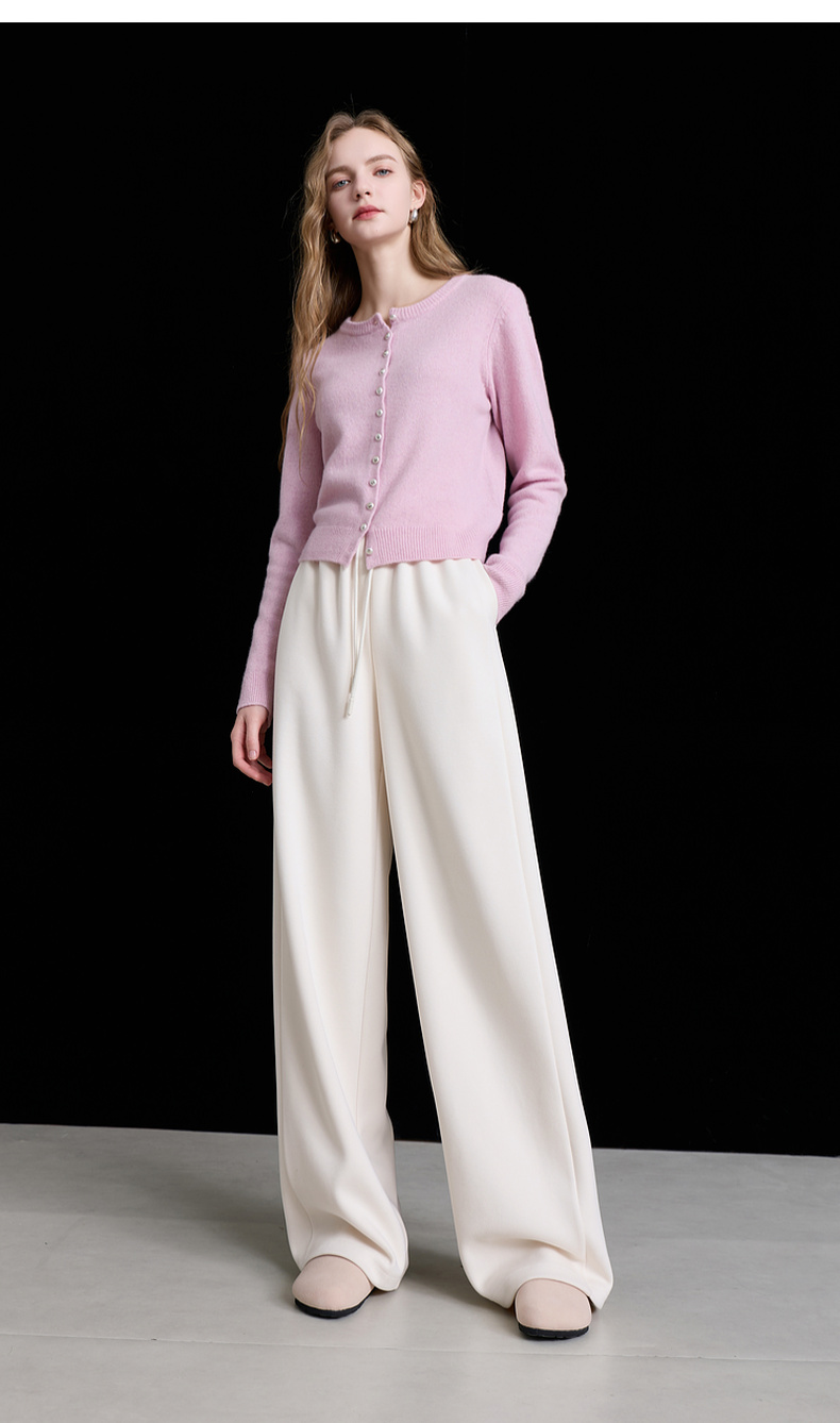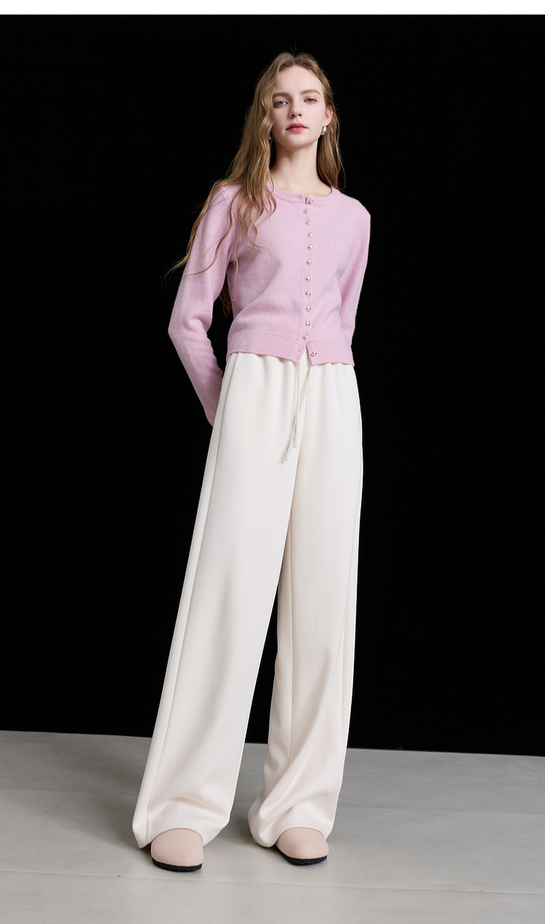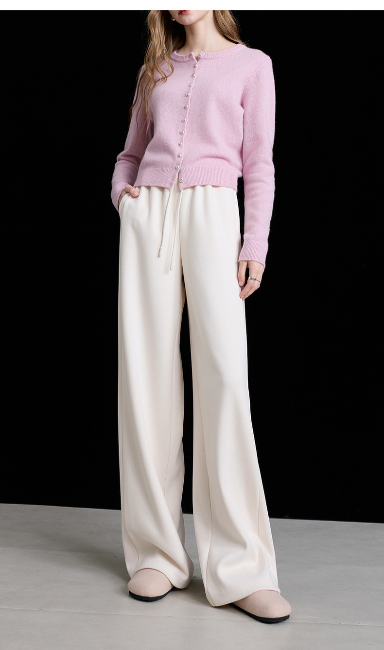 三彩2025冬季新款松紧高腰阔腿裤慵懒休闲长裤宽松垂感显瘦M