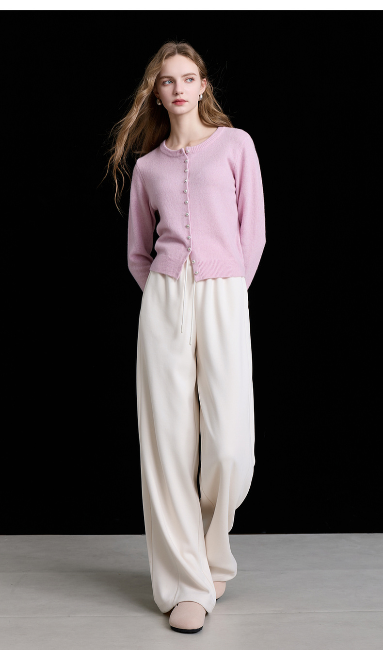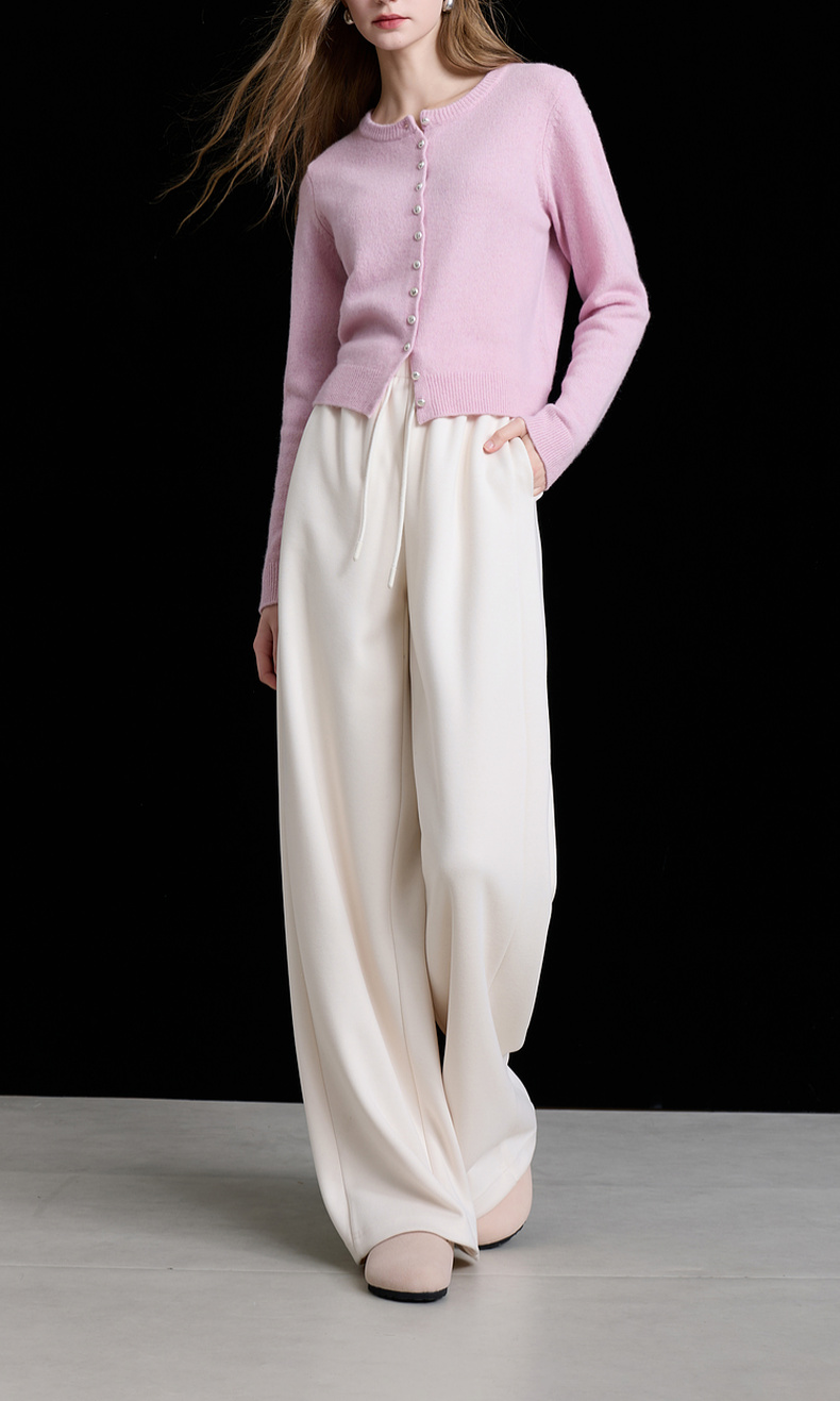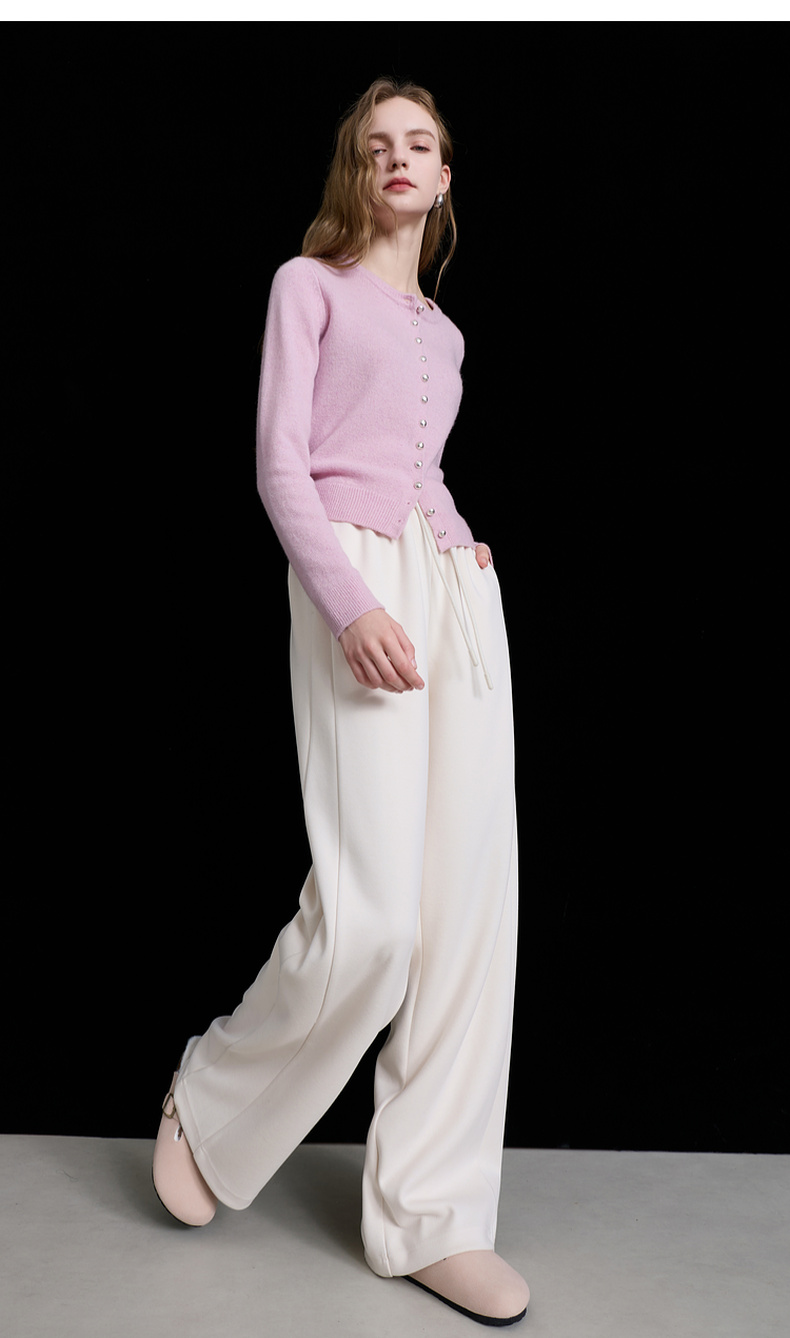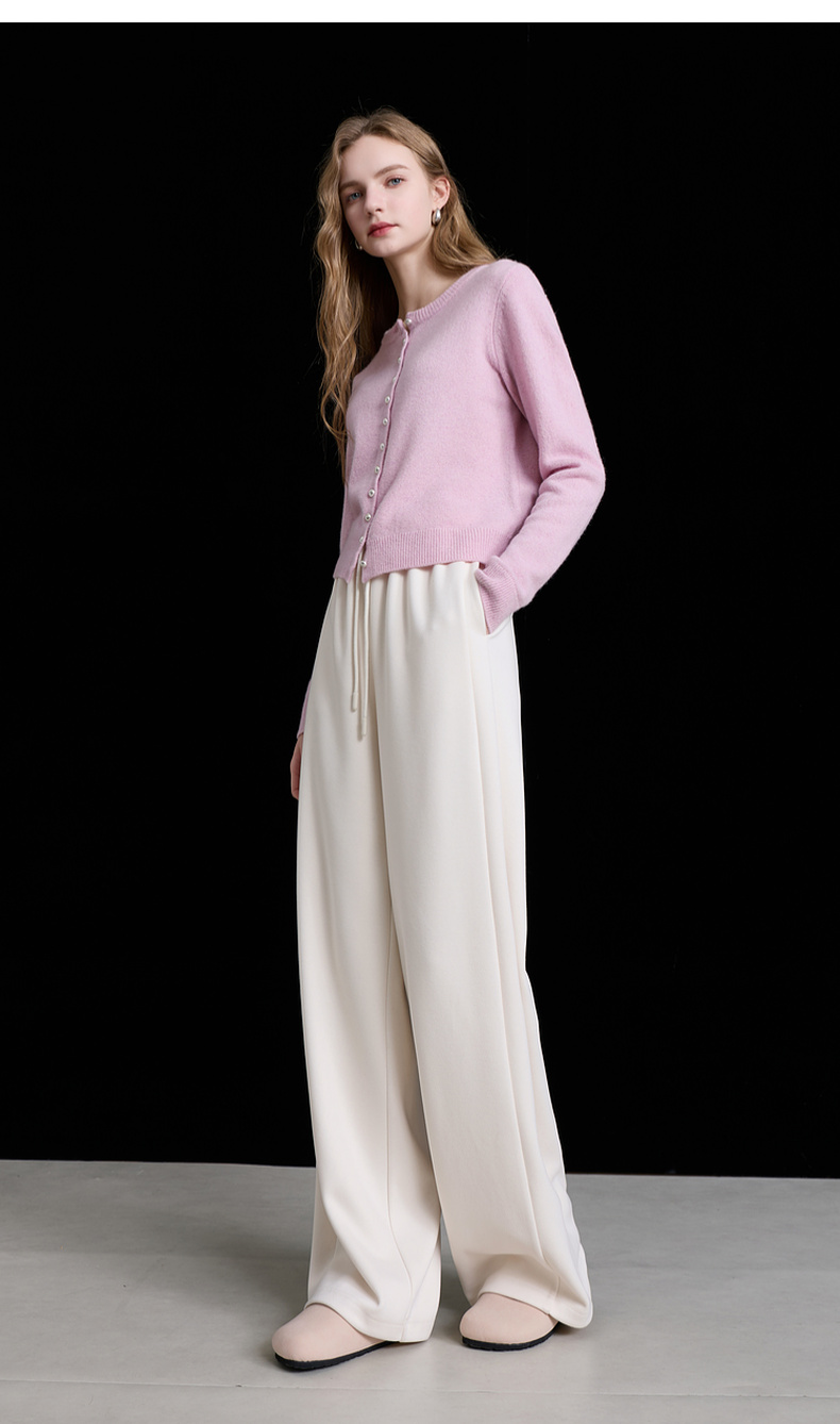三彩2025冬季新款松紧高腰阔腿裤慵懒休闲长裤宽松垂感显瘦M
