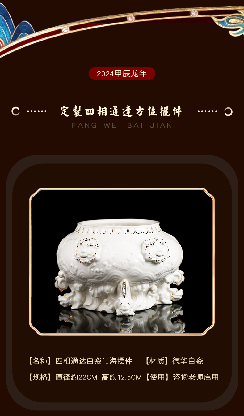 慈元阁2024龙年方位吉祥物四相通达白瓷摆件书房办公室摆设