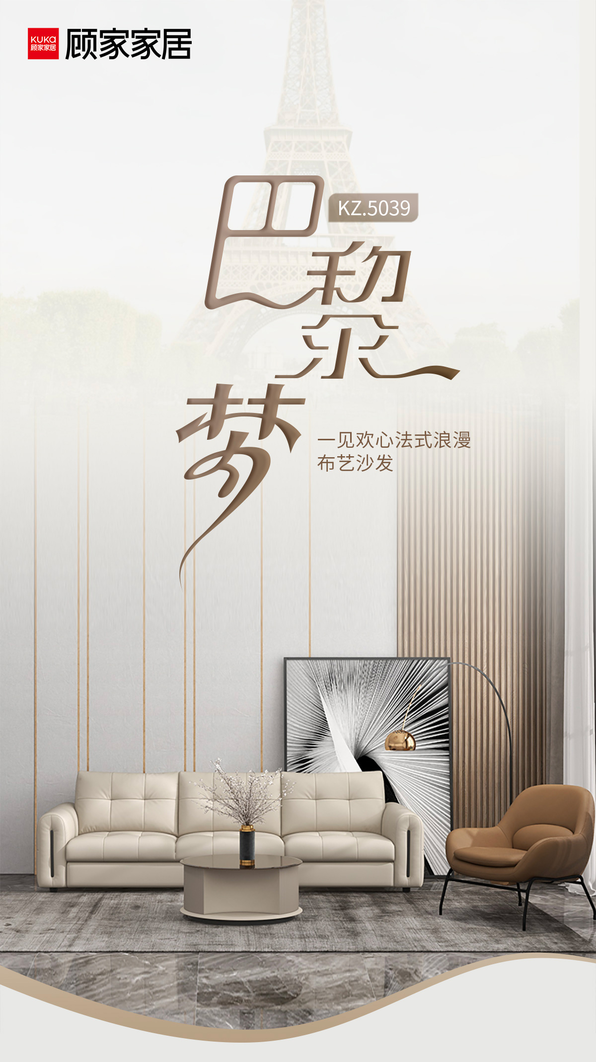 顾家家居整装 现代时尚 布艺固定沙发 KZ.5039-巴黎梦