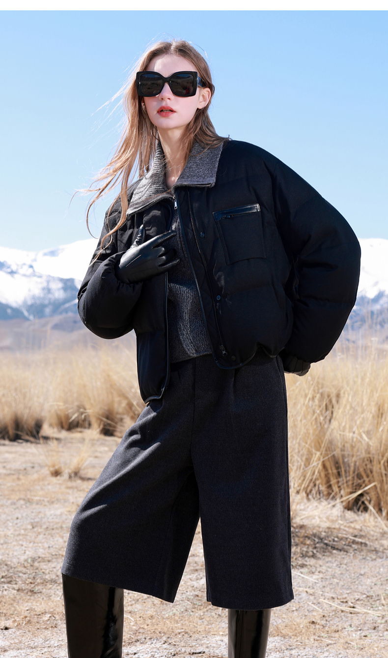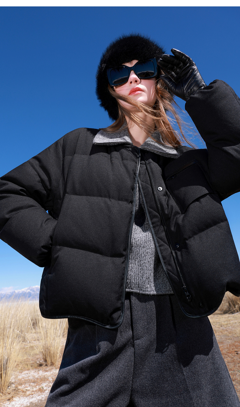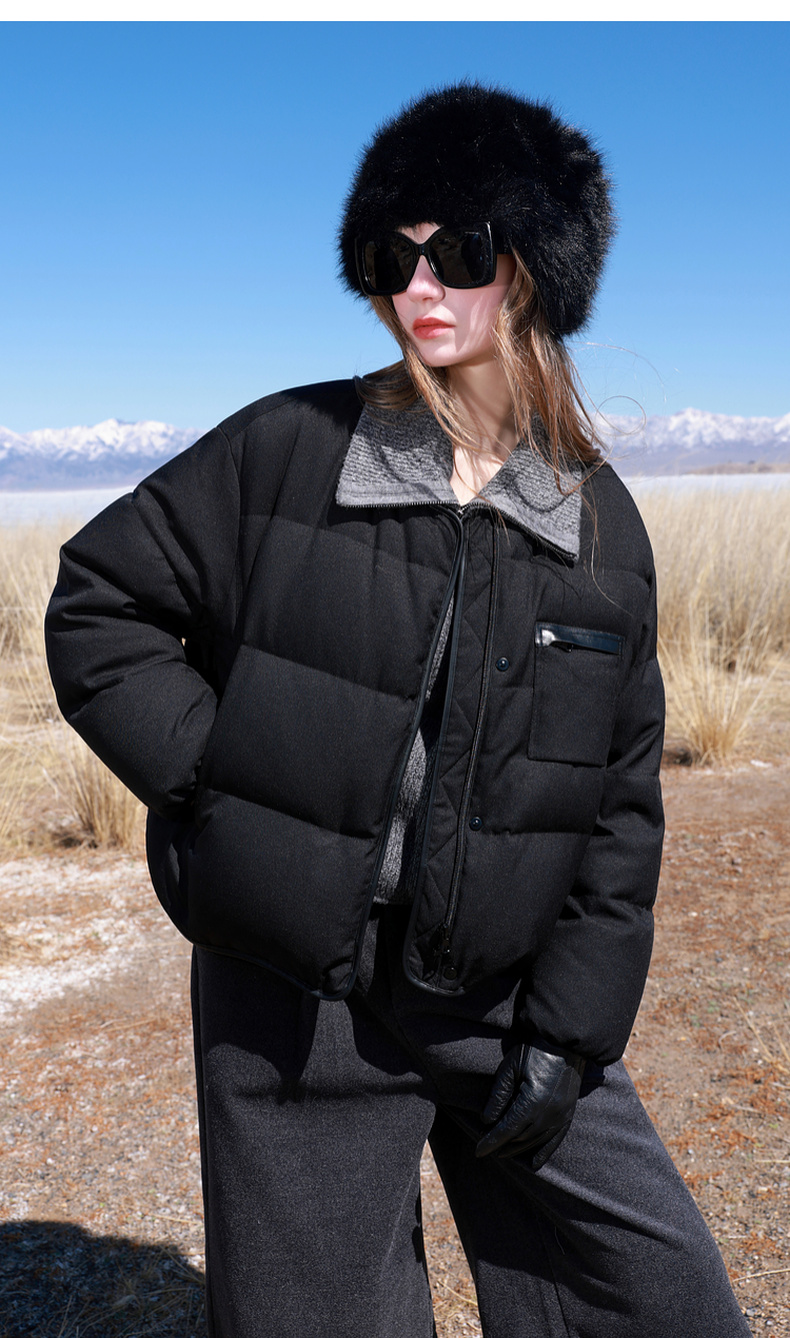 【90白鹅绒】三彩2025冬季新款短款宽松羽绒服鹅绒服保暖面包服M