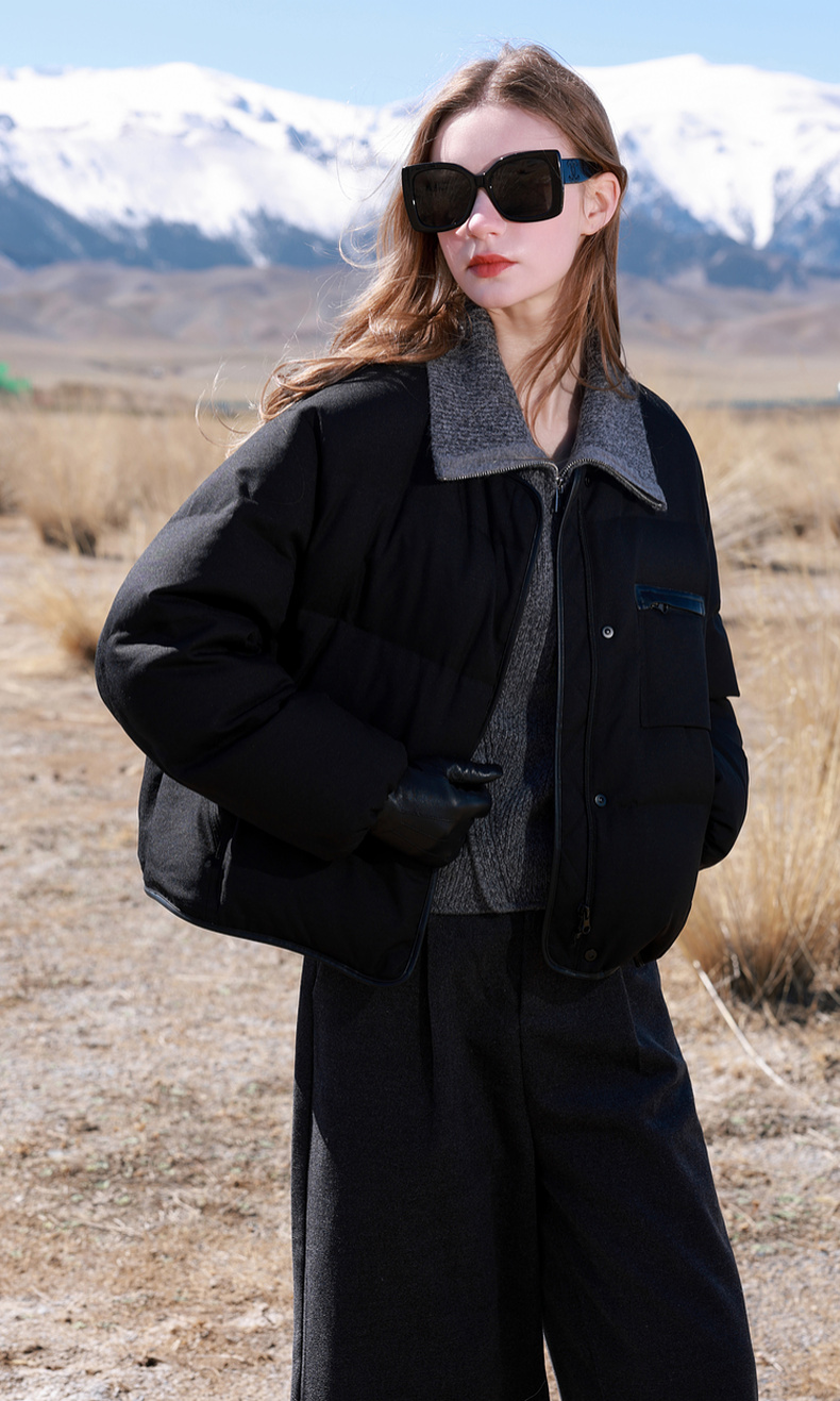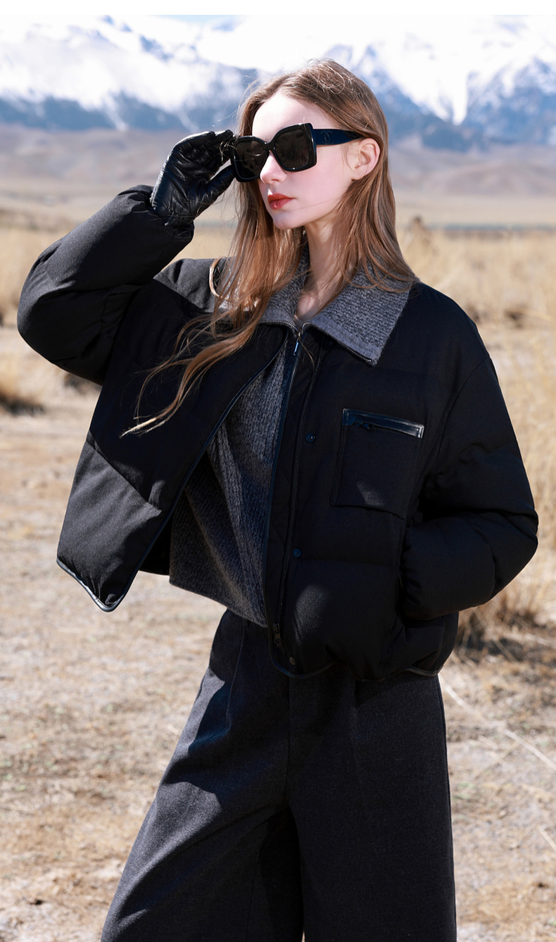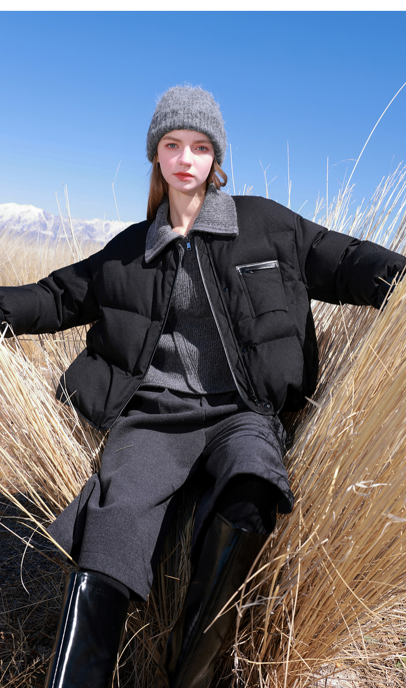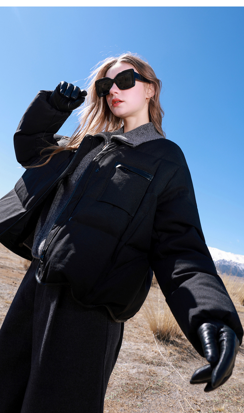 【90白鹅绒】三彩2025冬季新款短款宽松羽绒服鹅绒服保暖面包服M