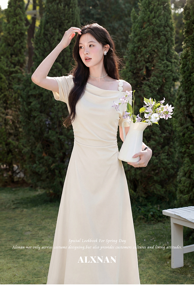 鹿向南【0423/20:00新品前1小时7折限量100件】杏色连衣裙