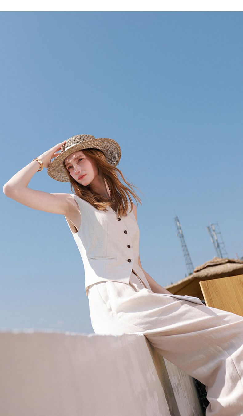 【莱赛尔】三彩2026夏季新款老钱风套装无袖马甲阔腿裤长裤M