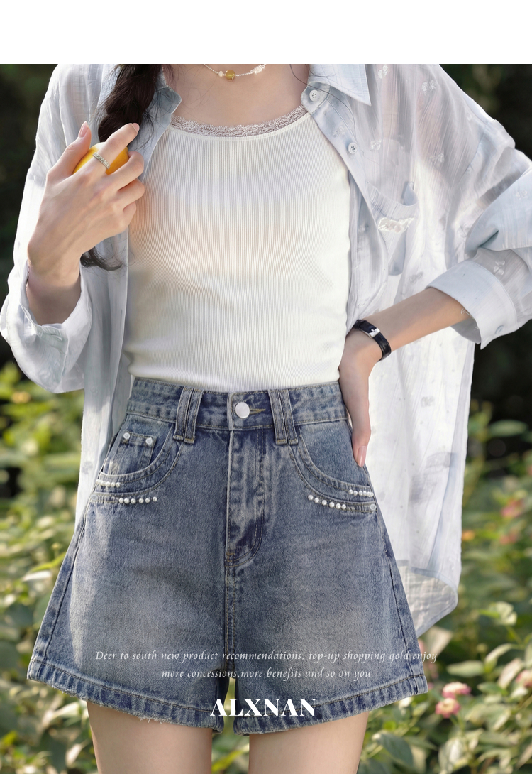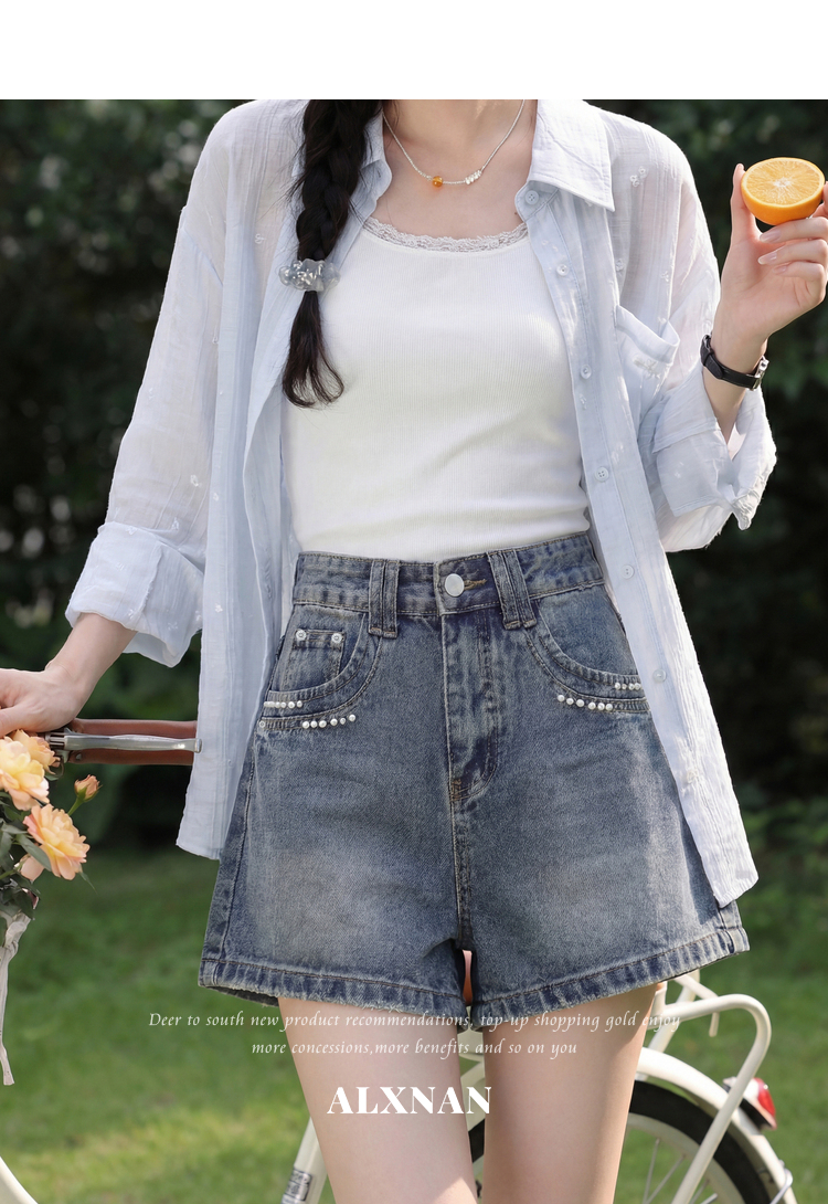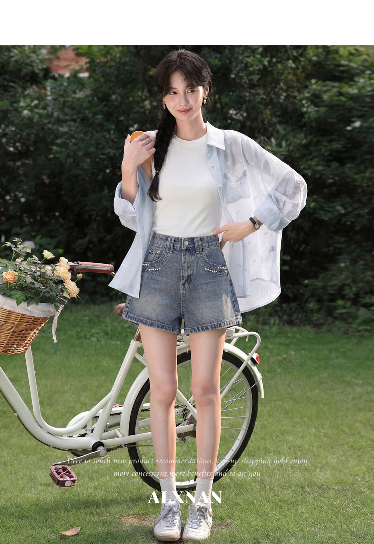 鹿向南【0405/20:00新品前1小时7折限量100件】蓝色牛仔短裤