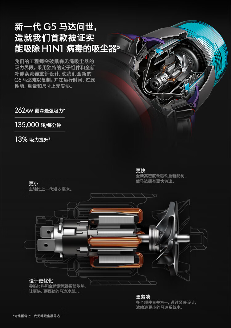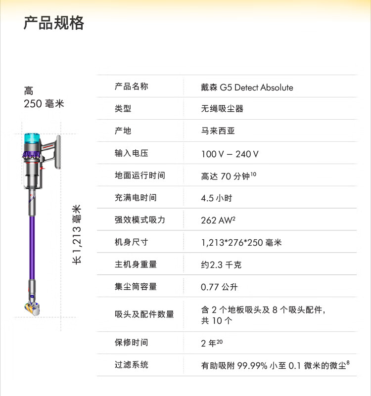 戴森(DYSON)G5 Detect Absolute手持无线吸尘器 除螨 宠物 家庭适用