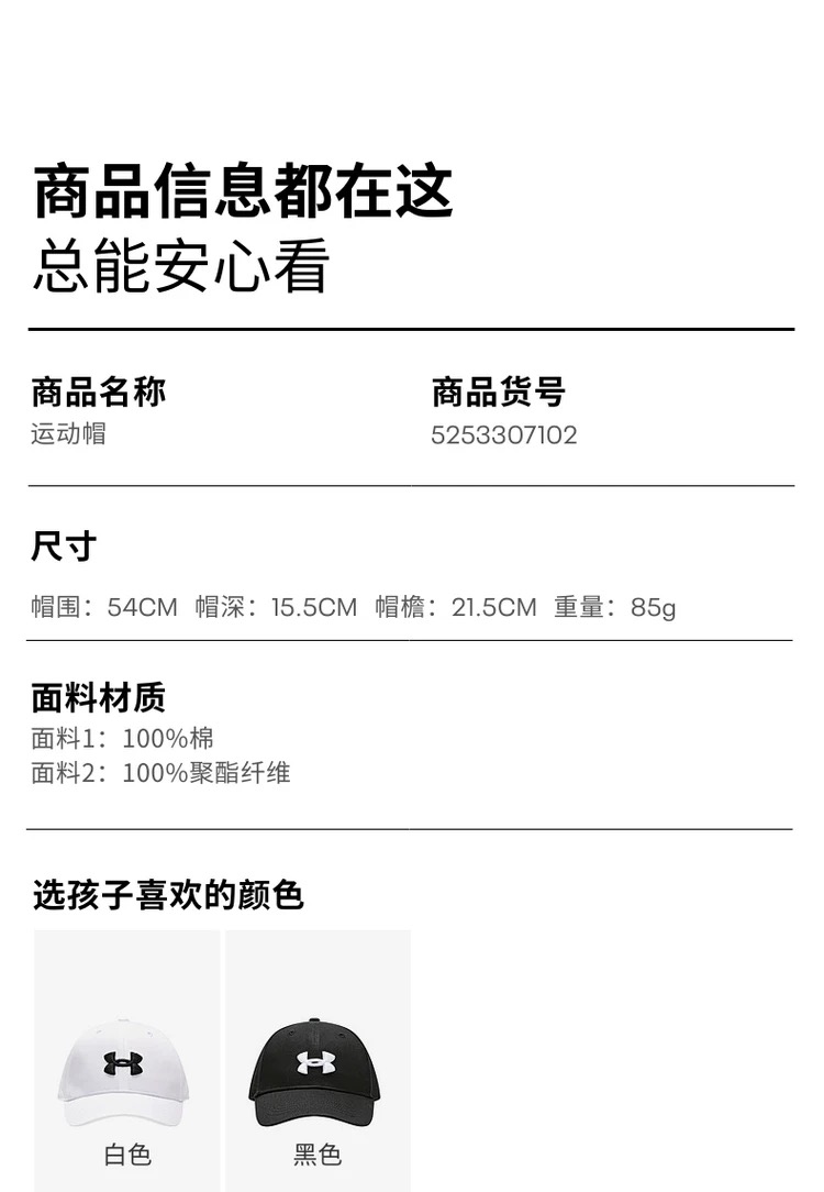 【12月-特惠福利】UnderArmour安德玛儿童百搭运动帽5253307102