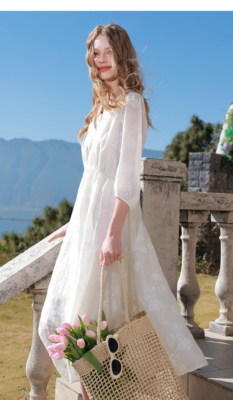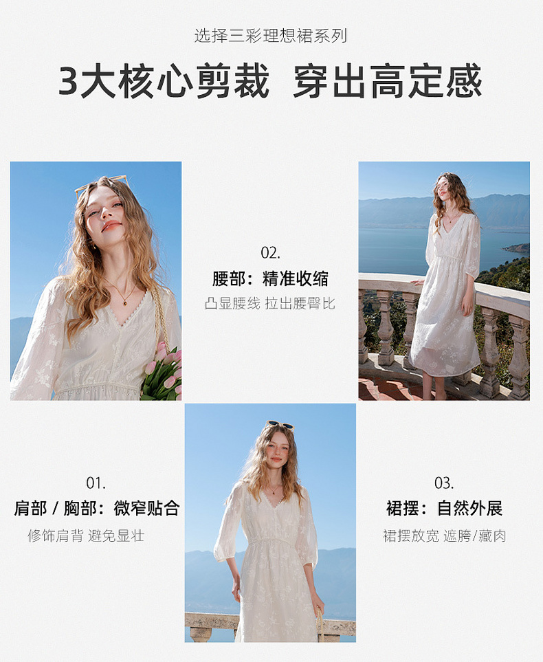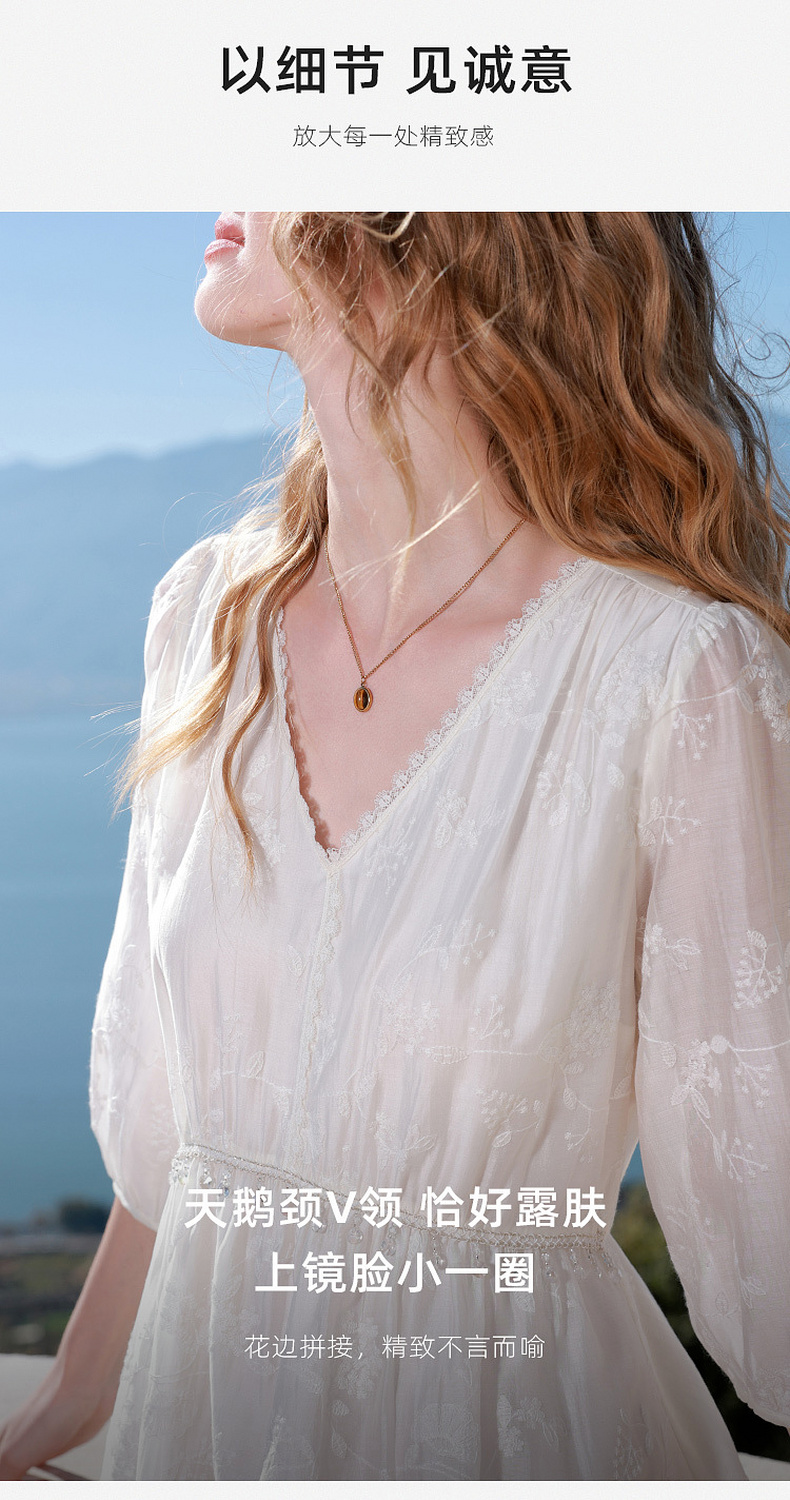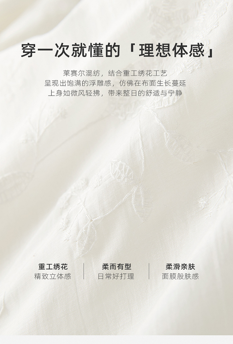 【理想裙】三彩2026春季新款法式莱赛尔绣花小白裙A字连衣裙长裙M