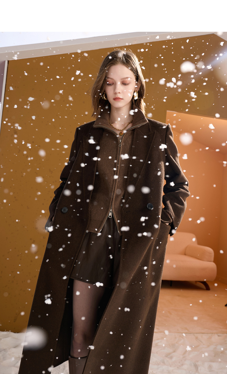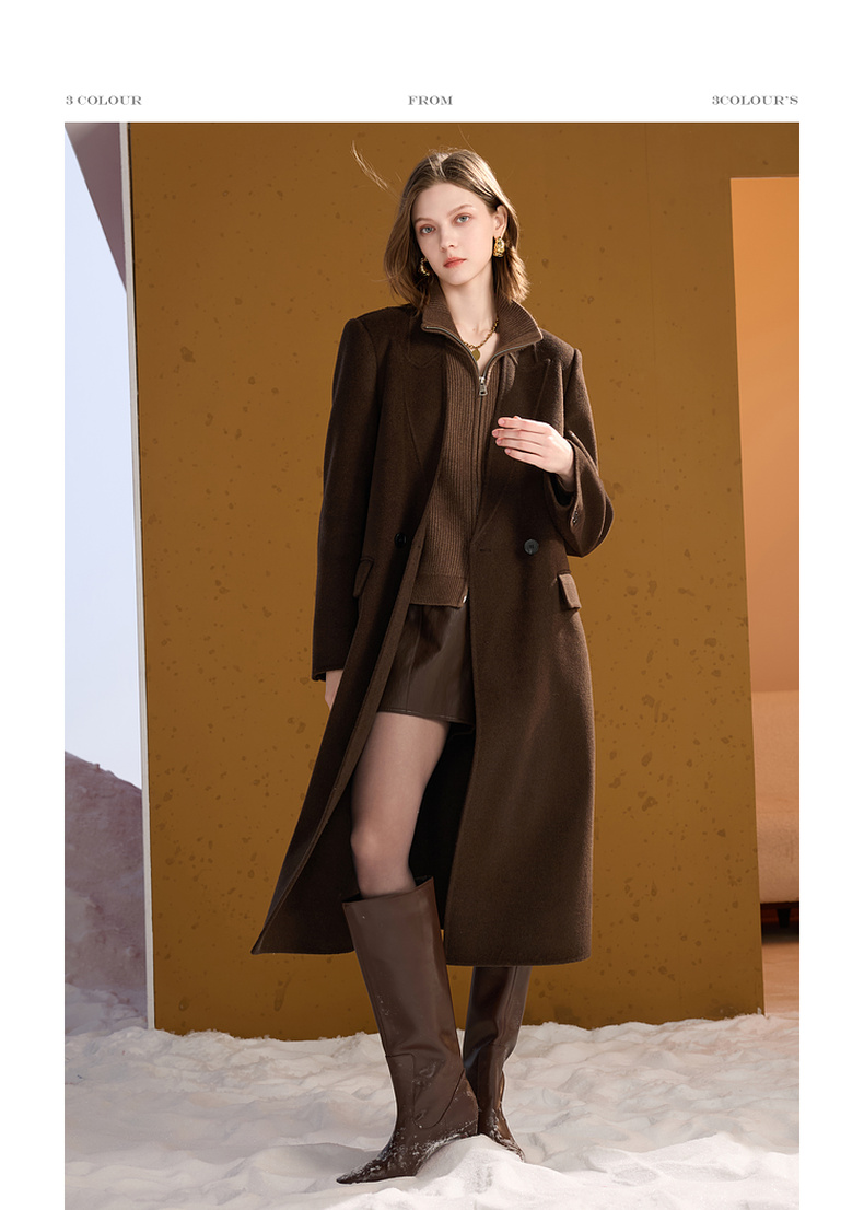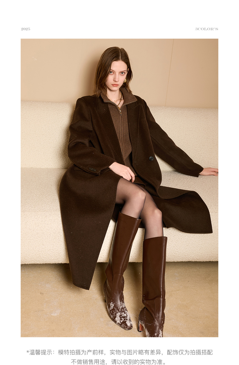 【绵羊毛】三彩2025冬季新款双面呢大衣长款正肩毛呢外套S