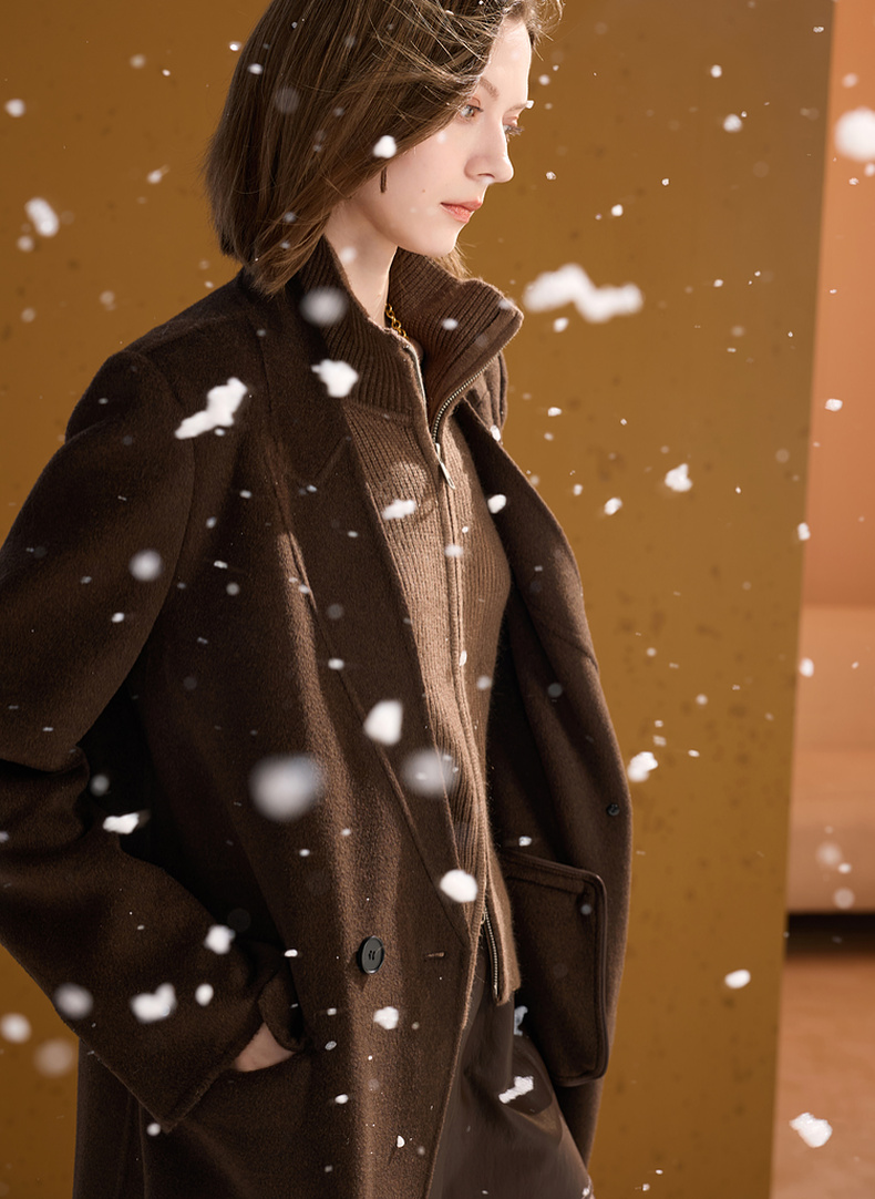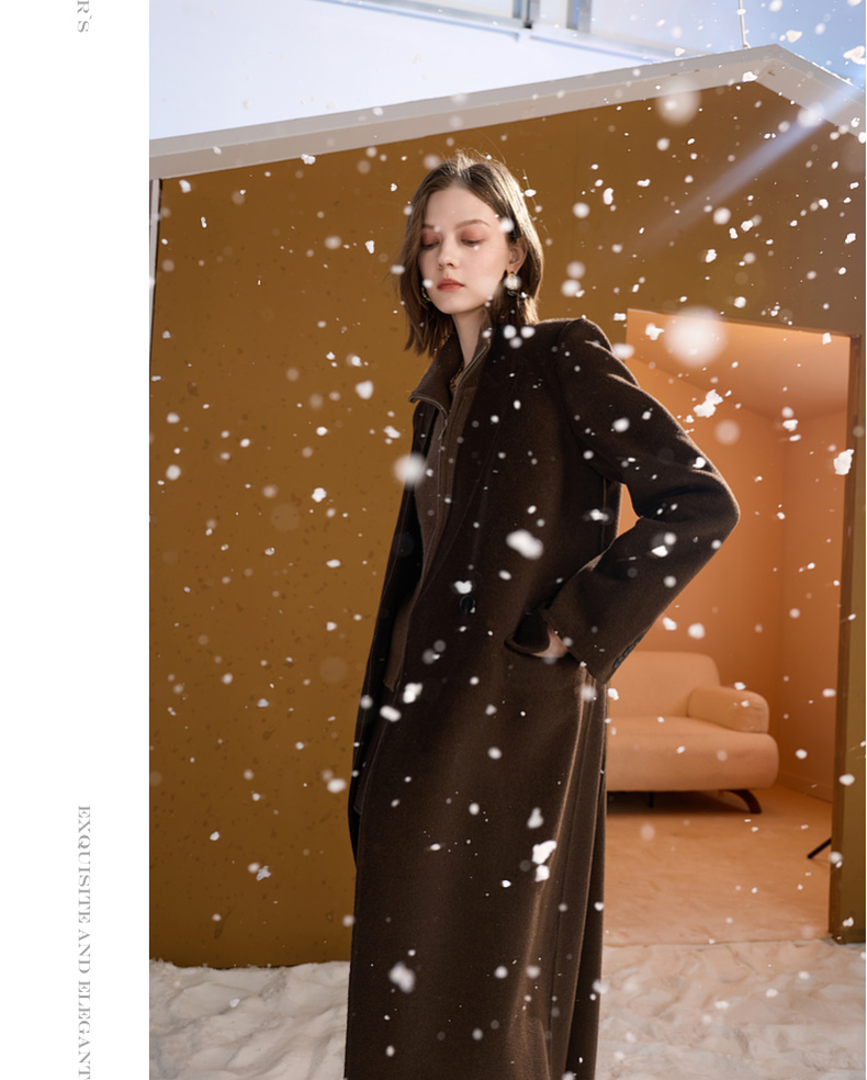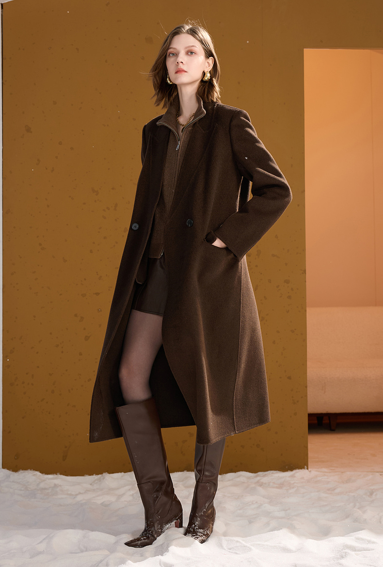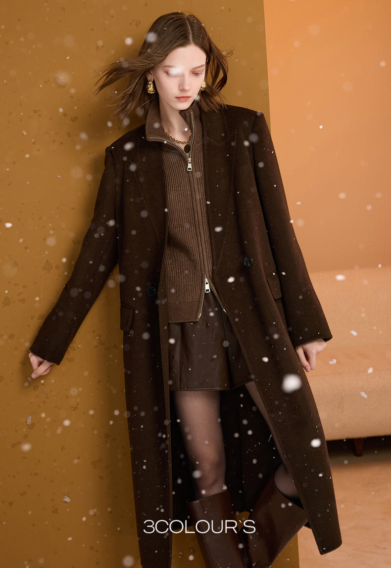 【绵羊毛】三彩2025冬季新款双面呢大衣长款正肩毛呢外套S