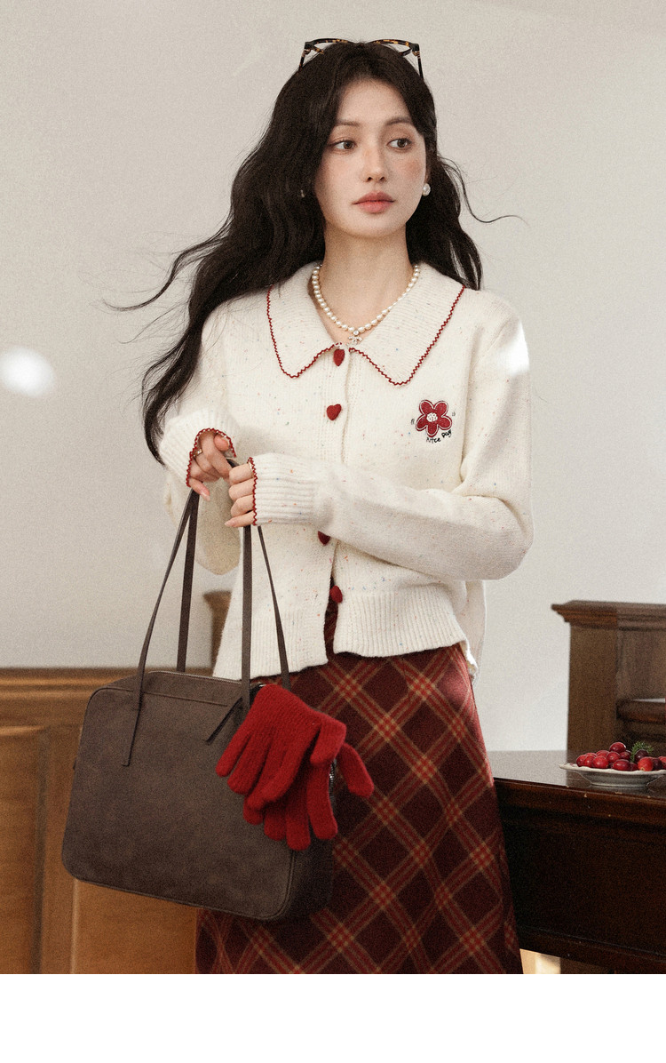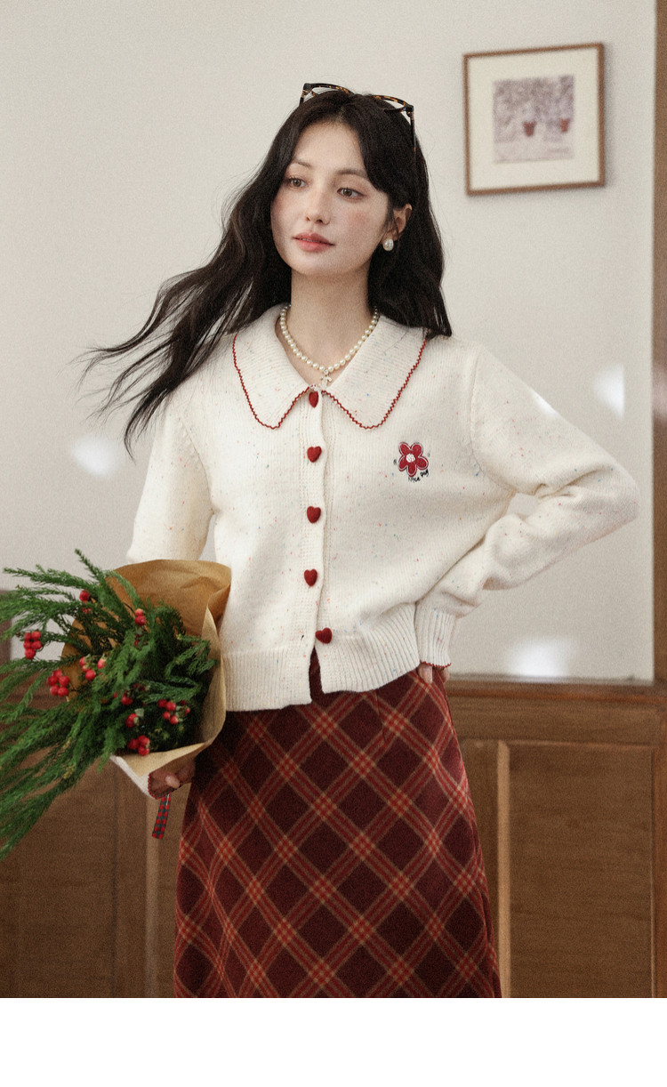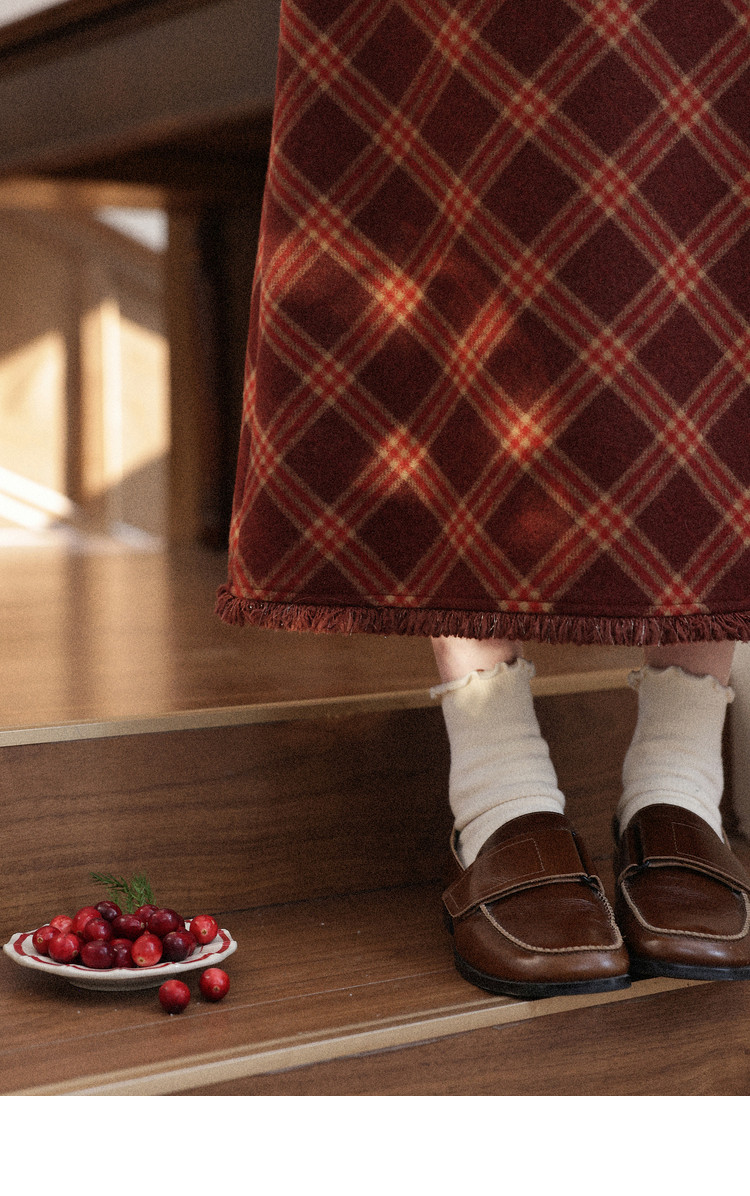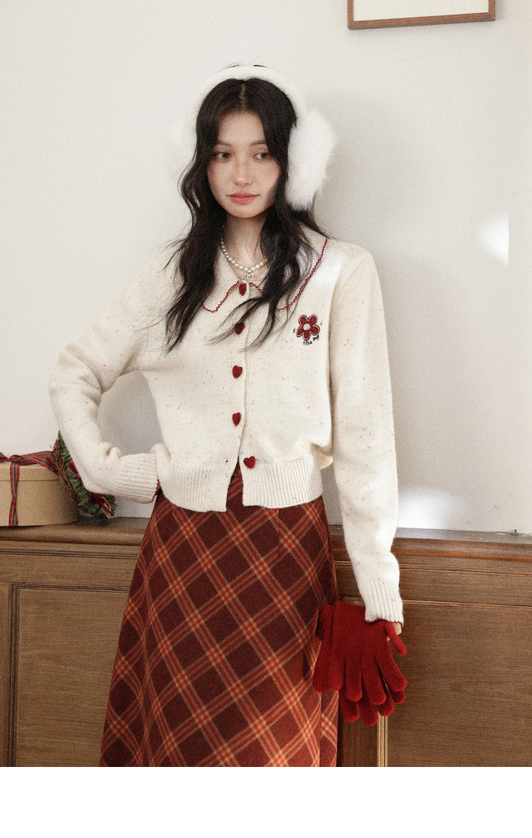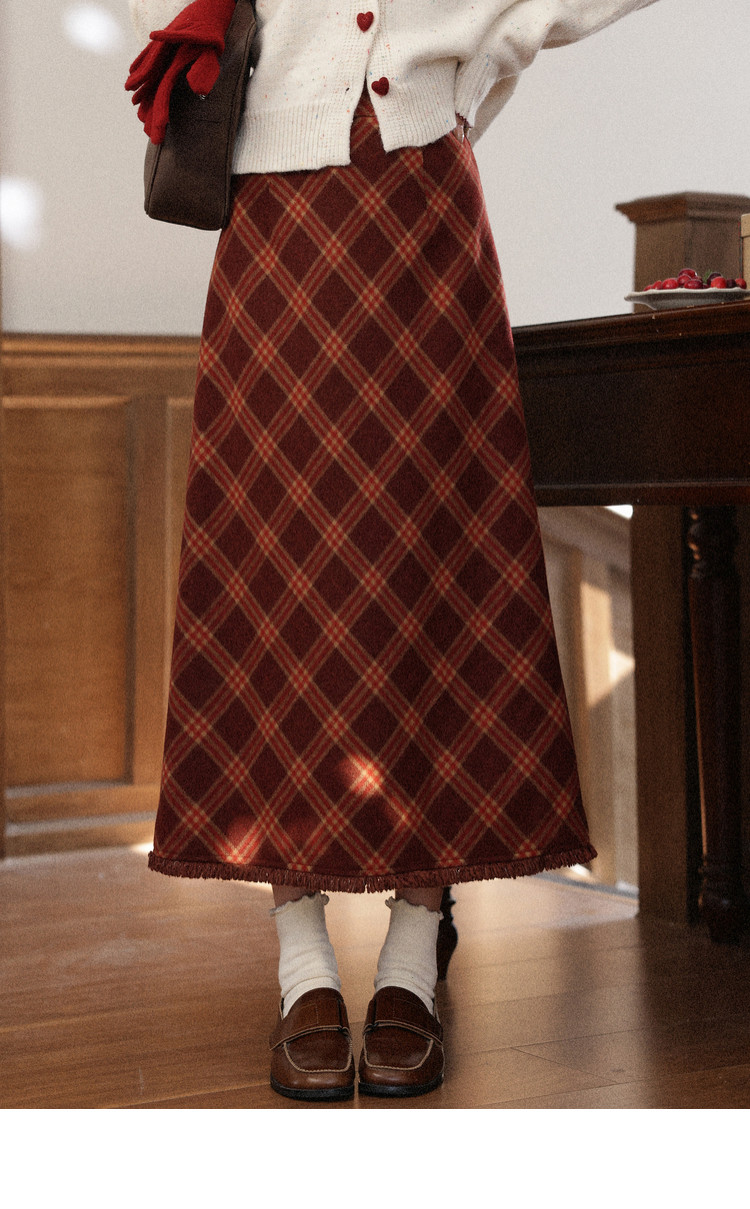 鹿向南「红莓果酱」杏色针织毛衣复古显瘦格纹半身裙女冬时尚套装