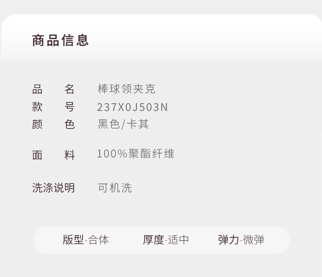 【风尚系列】休闲棒球领夹克防风保暖修身男士237X0J503N