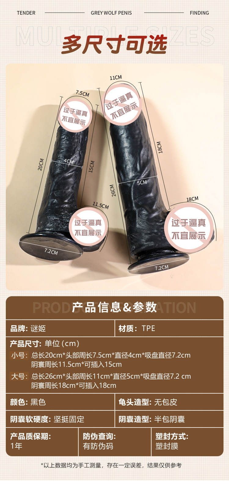 【谜姬】 黑色手动巨无霸阳具 仿真黑根