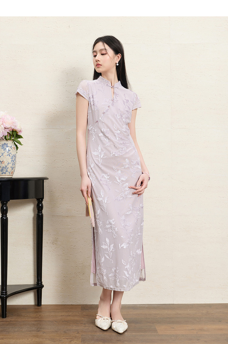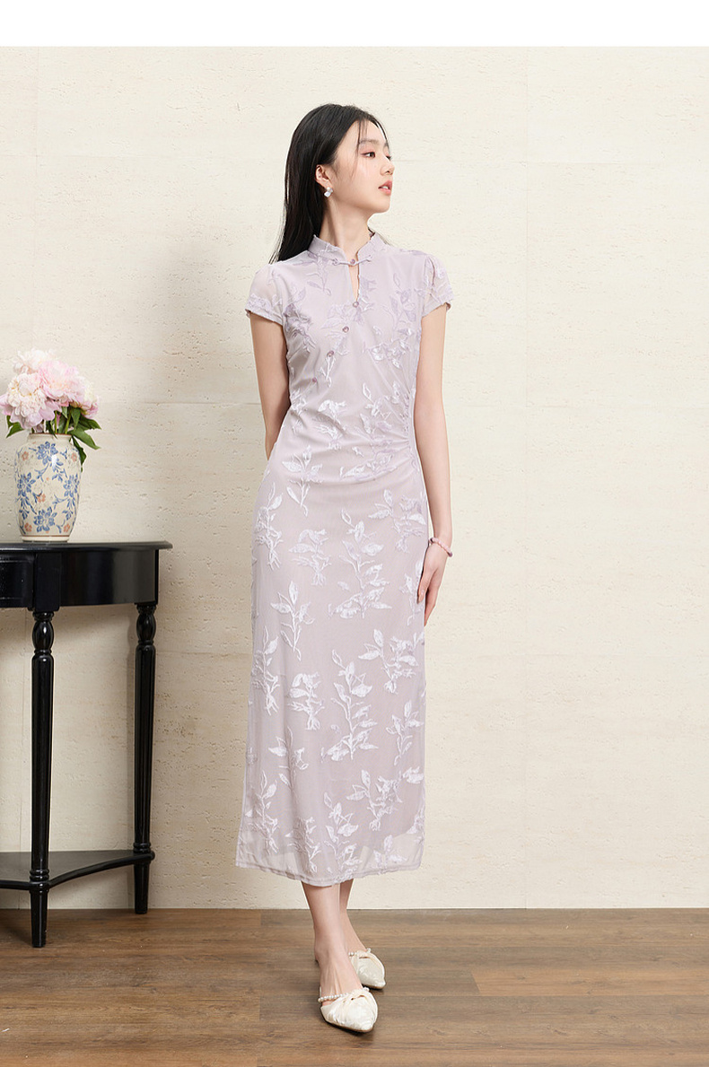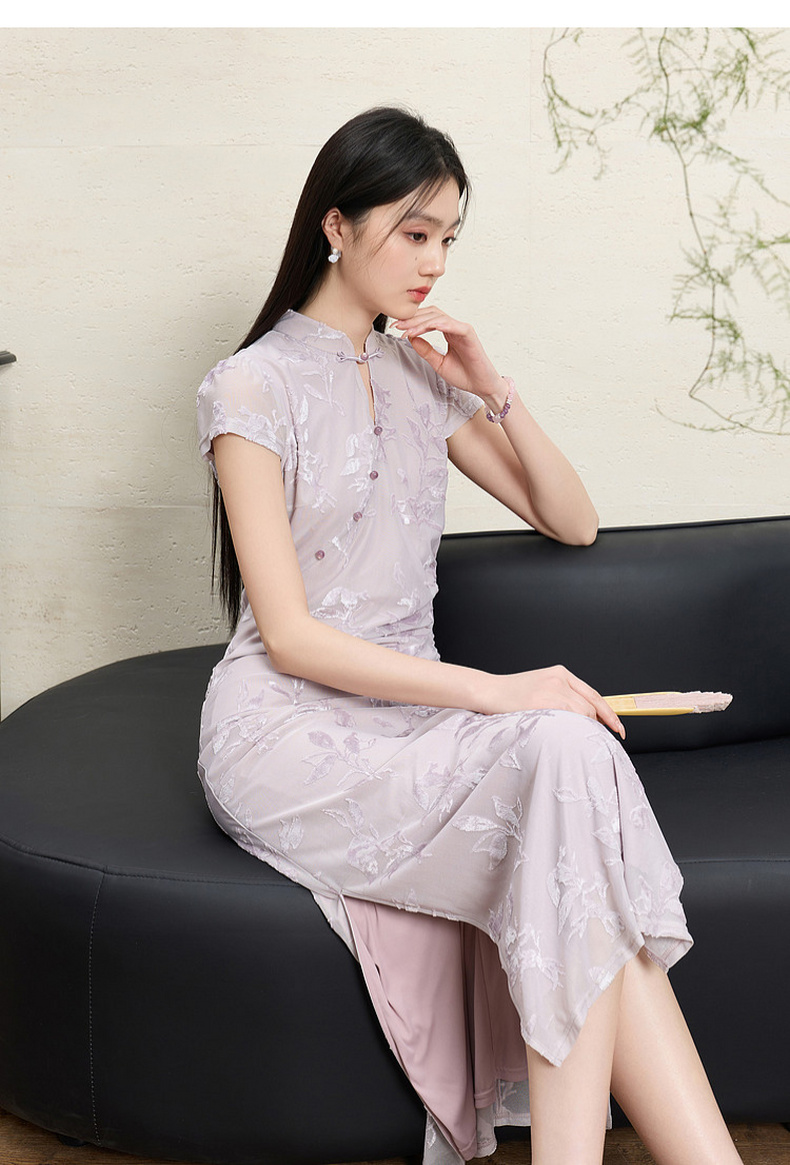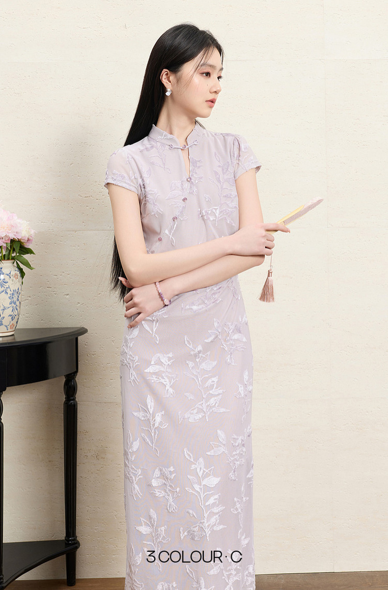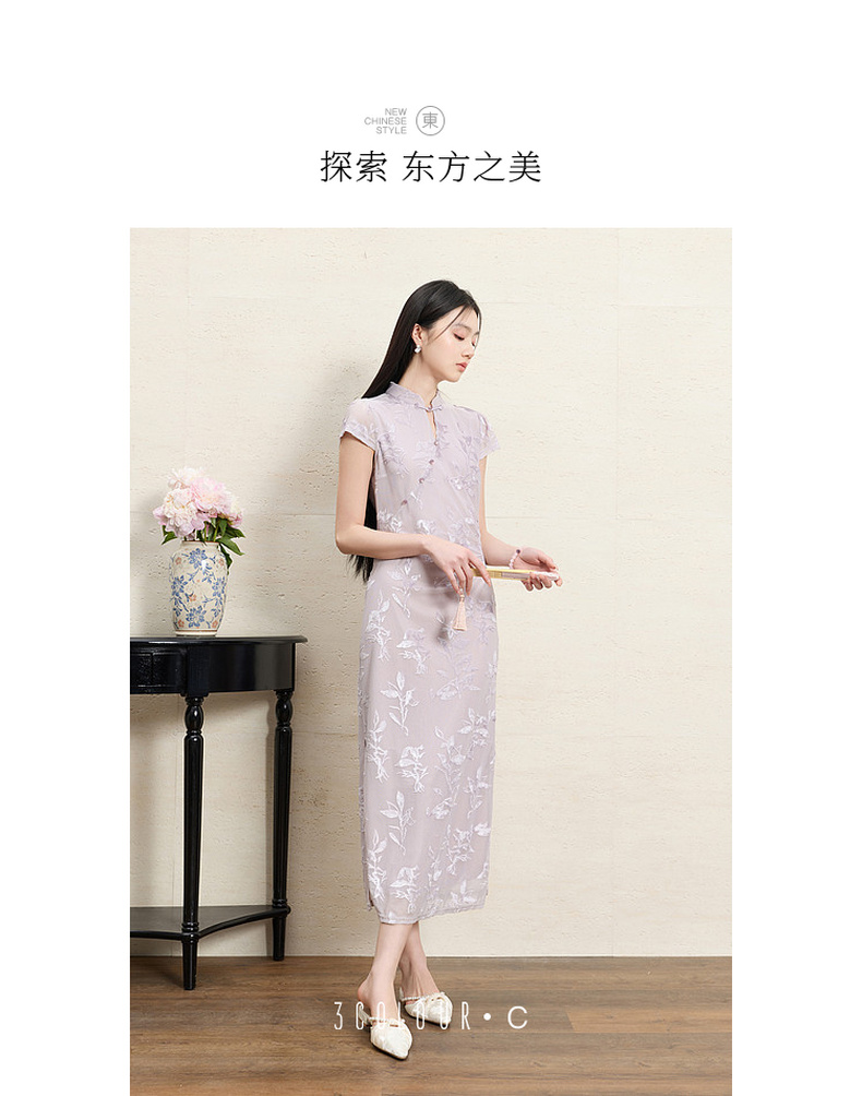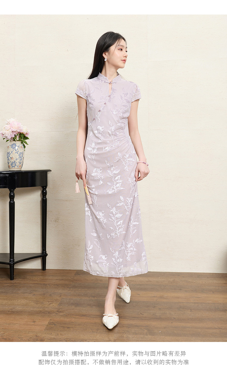 【紫陌红尘】三彩2026夏季新款新中式连衣裙修身直筒长裙C
